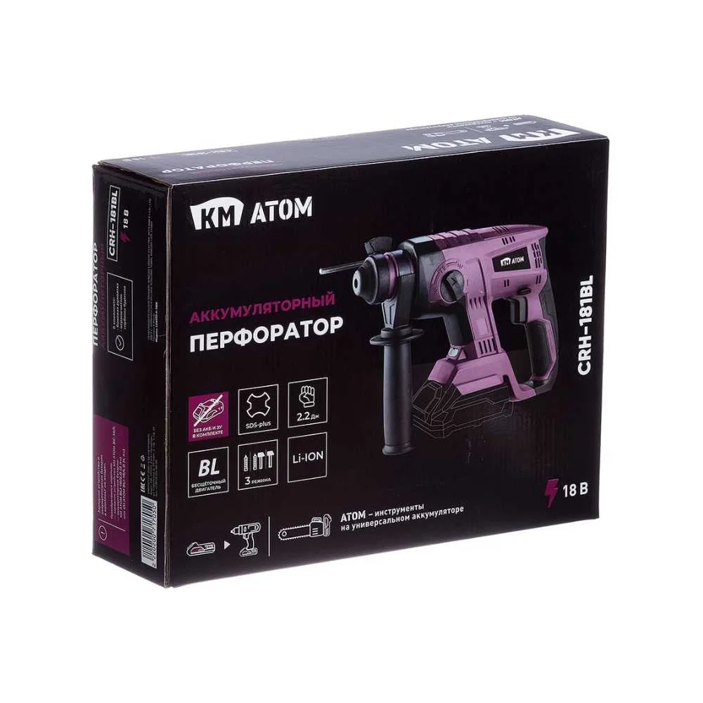 Купить Перфоратор аккумуляторный КМ АТОМ 18 В 2,2 Дж SDS-plus без АКБ и ЗУ СRH-181BL по лучшей цене с доставкой - интернет магазин №1 в России