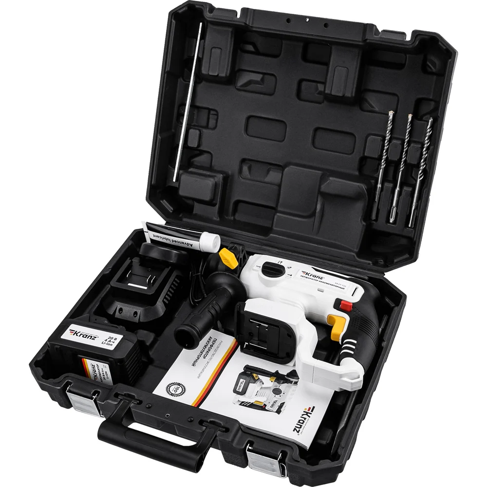 Купить Перфоратор аккумуляторный KRANZ SDS-plus 2,2Дж 1x4Ач в кейсе KR-PT-120 по лучшей цене с доставкой - интернет магазин №1 в России