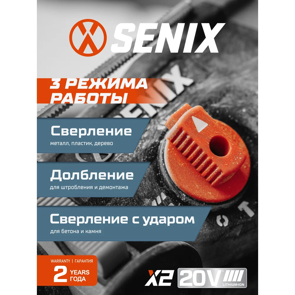 Купить Перфоратор SENIX SDS-plus , серии X2 20В 2.0Дж, 24 мм, 1х5Ач, ЗУ, кейс PDRX2-M4-EU по лучшей цене с доставкой - интернет магазин №1 в России