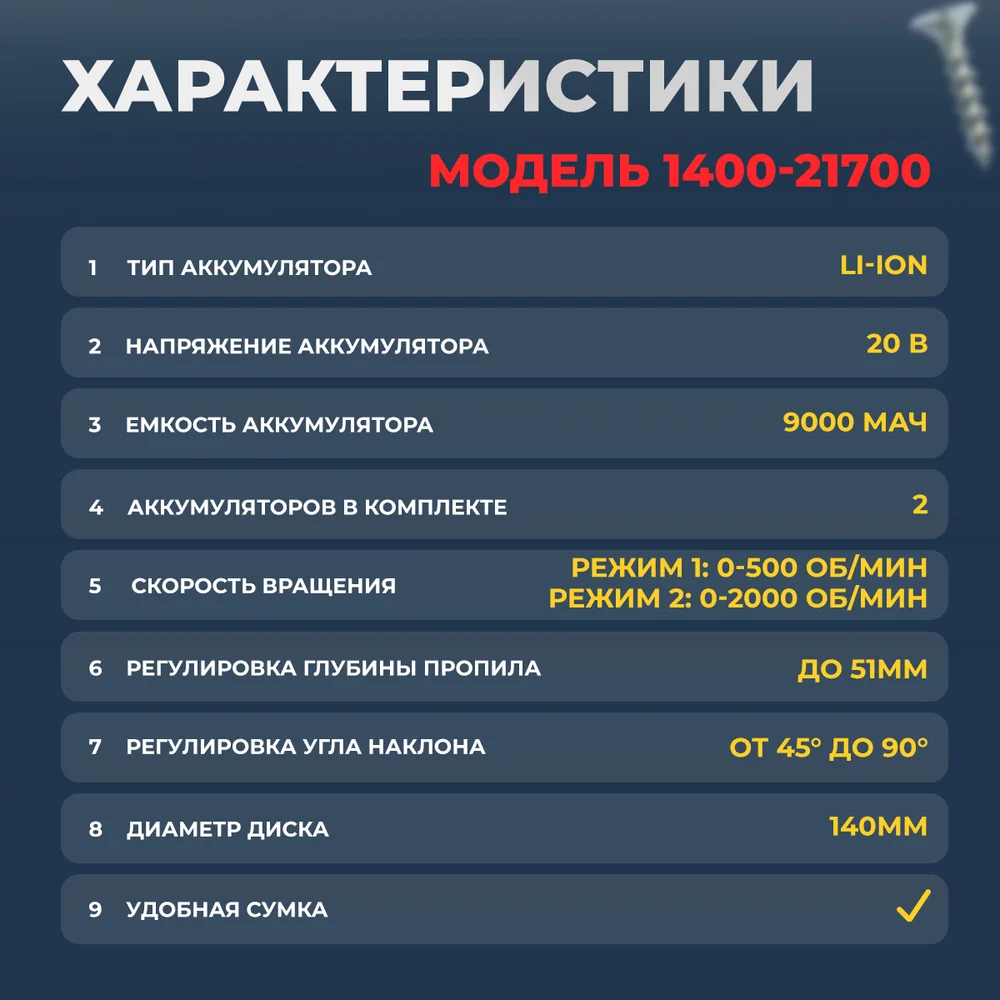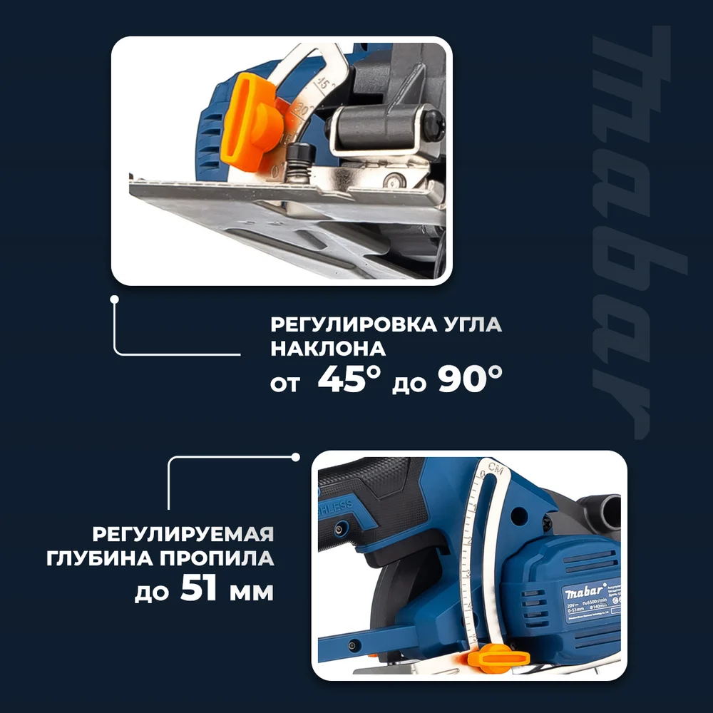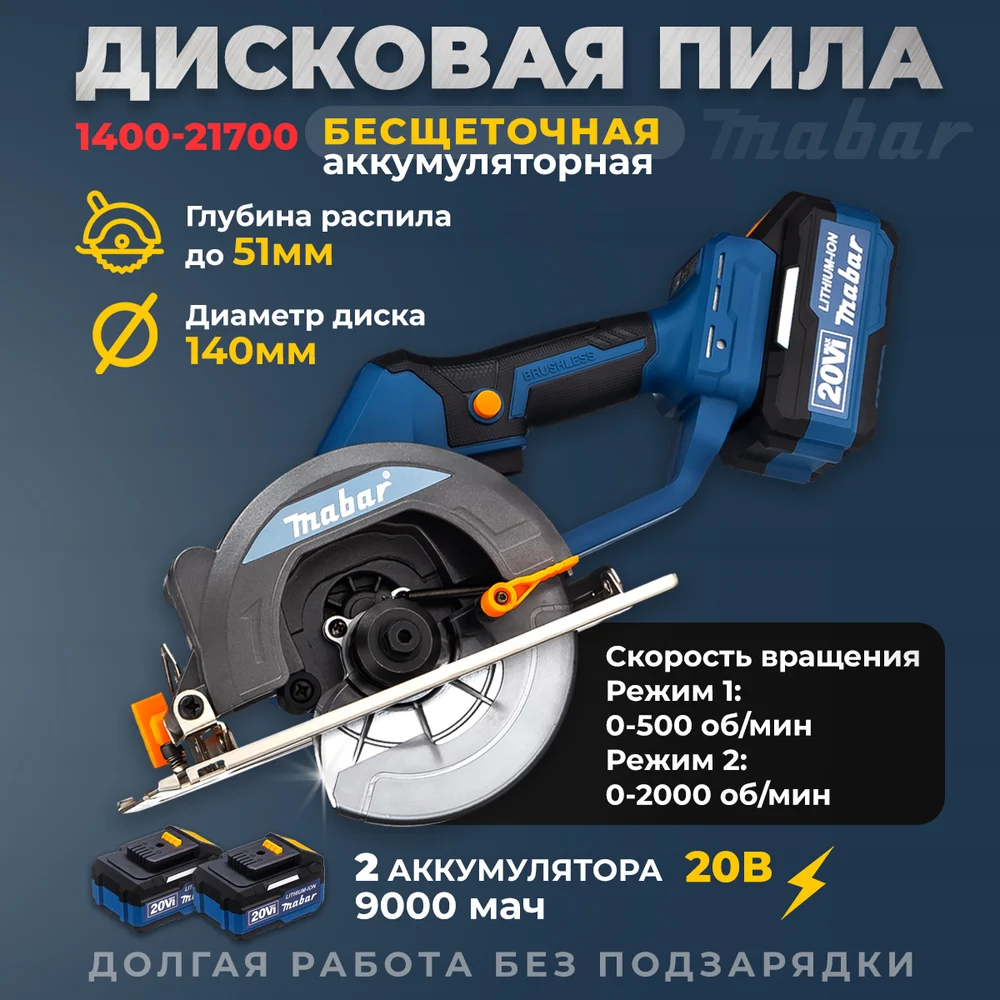Аккумуляторная бесщеточная дисковая пила MABAR с регулировкой угла и глубины пропила 1400-21700