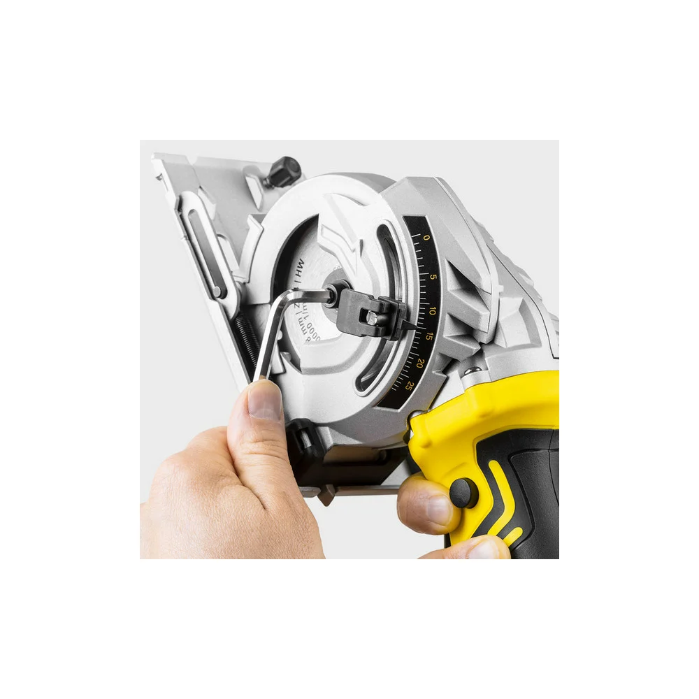 Комплектация Аккумуляторная мини-циркулярная пила; Лезвие пилы HSS (44 зуба),; Лезвие пилы TCT (24 зуба); Лезвие пилы алмаз; Параллельный упор; Адаптер для сбора пыли; Шестигранный ключ SW5; Инструкция; Чемодан