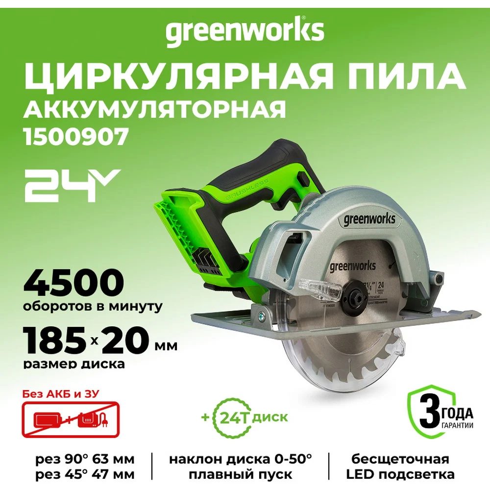 Купить Аккумуляторная циркулярная пила GreenWorks GD24CS 1500907 по лучшей цене с доставкой - интернет магазин №1 в России