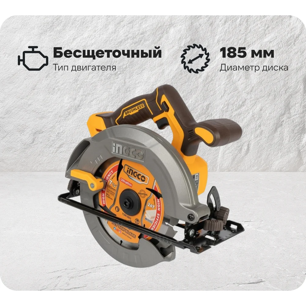 Аккумуляторная циркулярная пила INGCO BL 20В 185 мм, без АКБ и ЗУ SUPER INDUSTRIAL CSLI1851