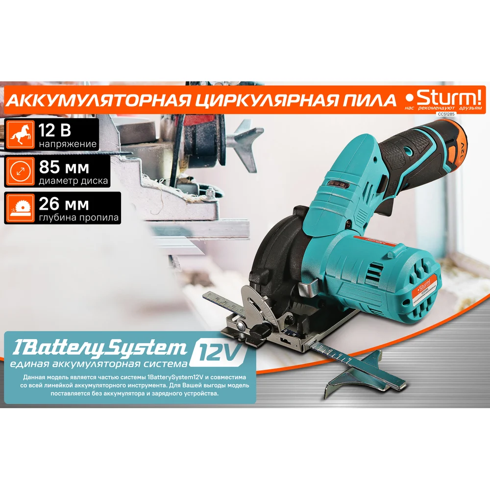 Купить Аккумуляторная циркулярная пила Sturm 1BatterySystem12V (151) CCS1285 по лучшей цене с доставкой - интернет магазин №1 в России