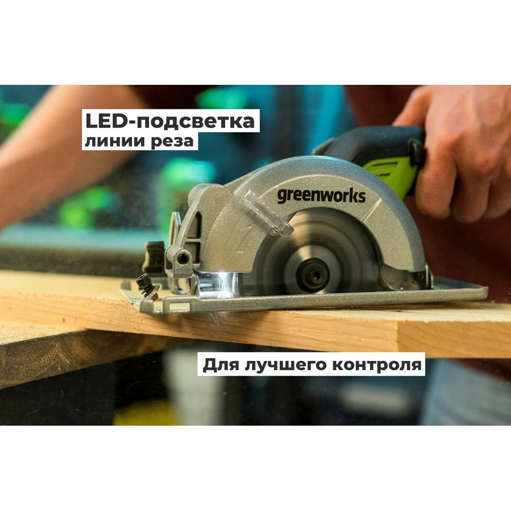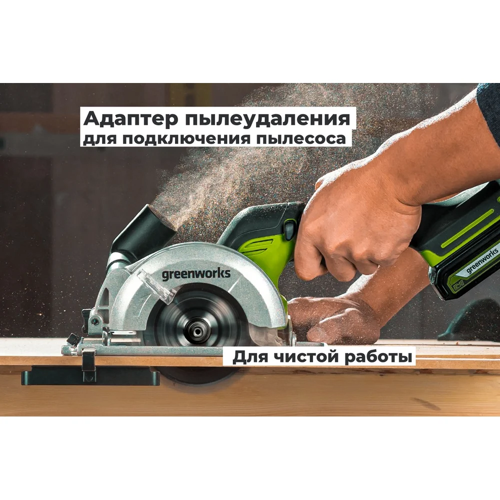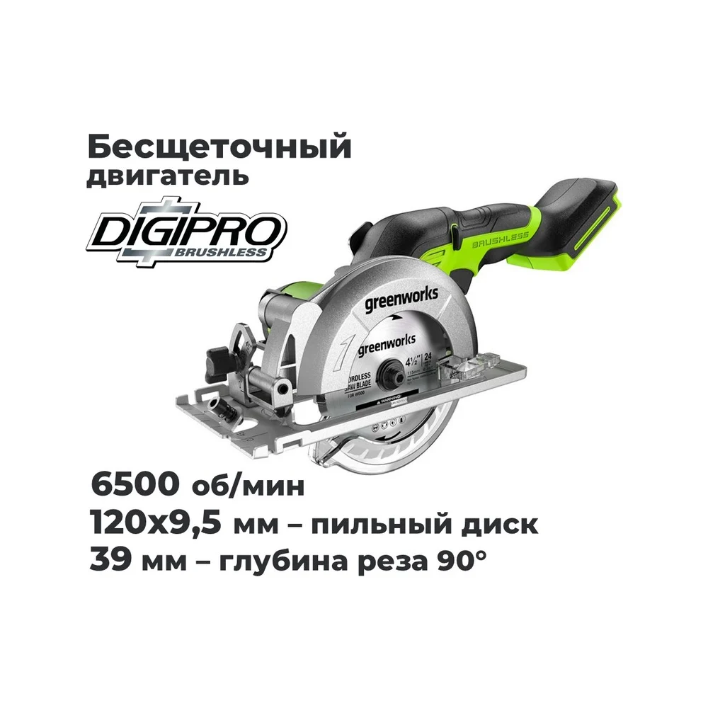 Дисковая мини пила GreenWorks G24MCS, 24V, б/щет, диск 120x9.5мм, 6500об/мин, рез 39мм, 1x2Ач, ЗУ, коробка 1501207VUA