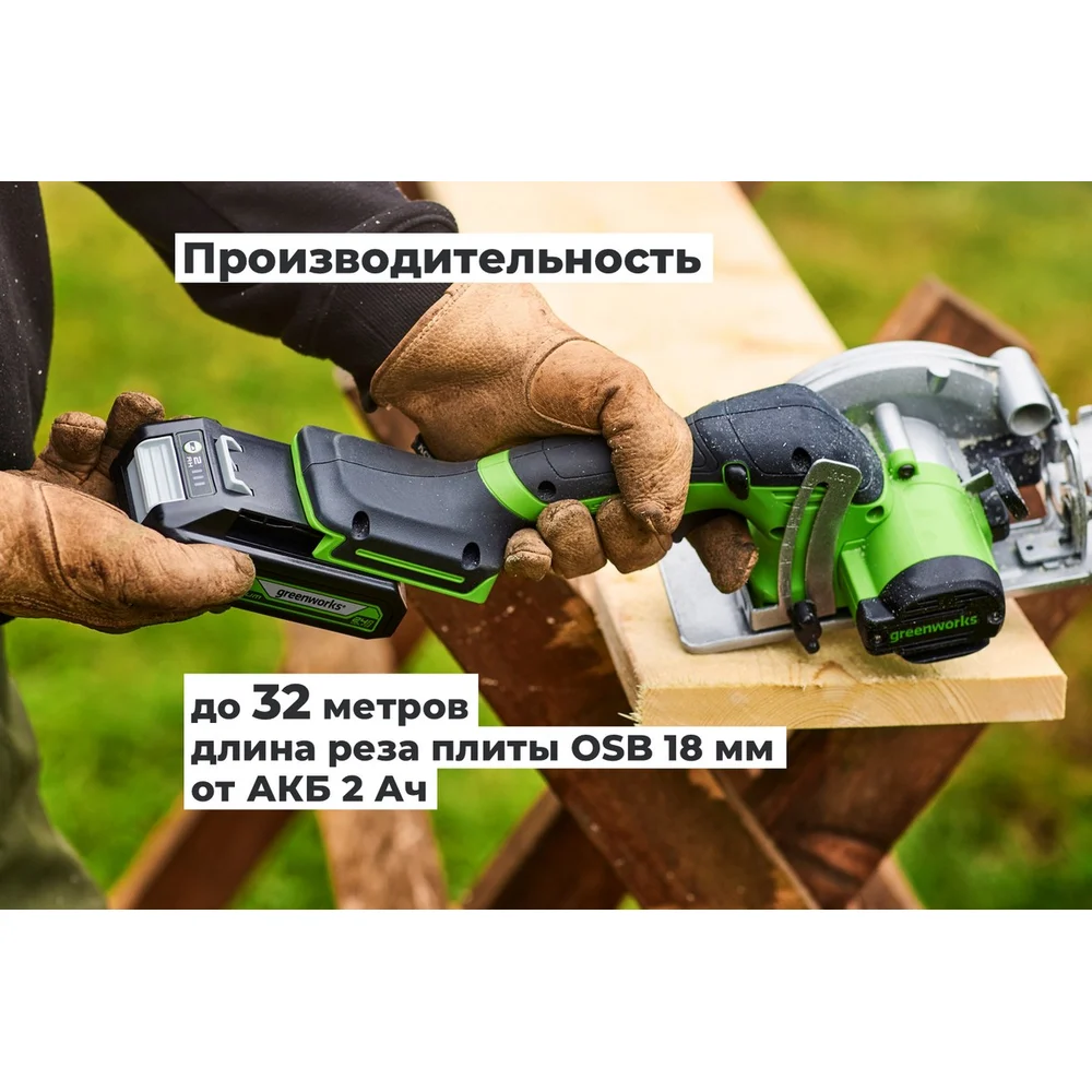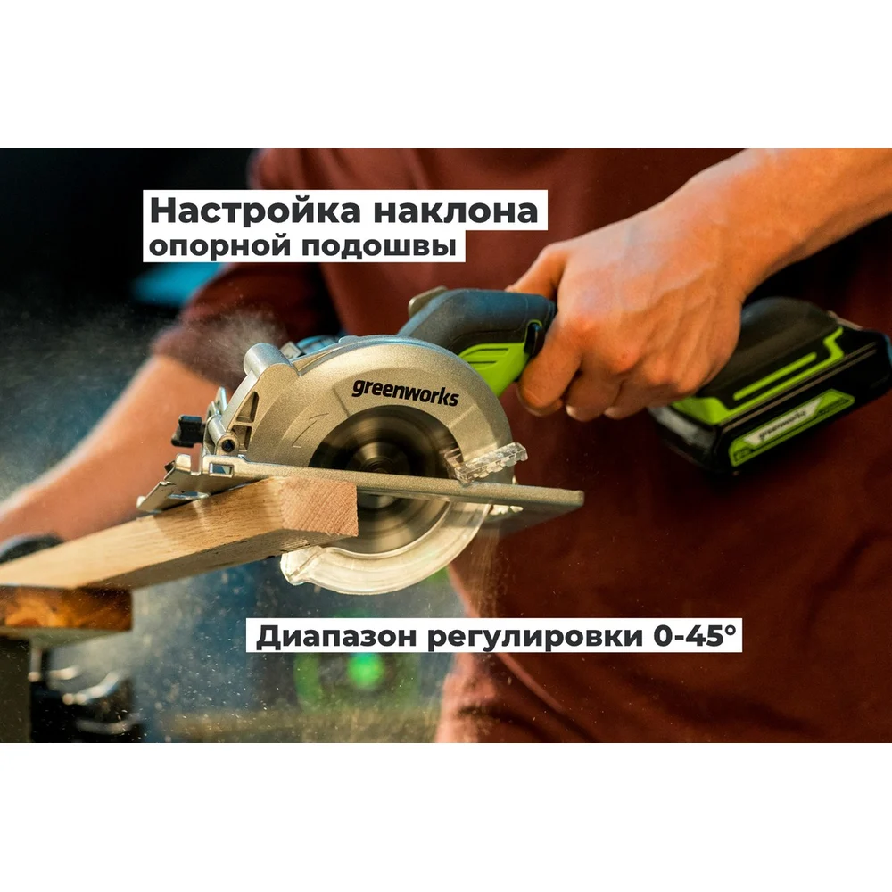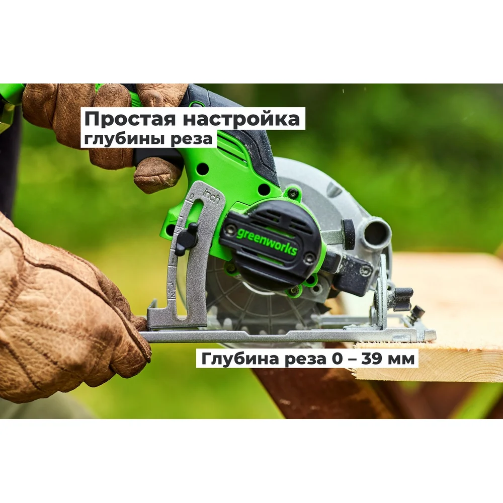 Купить Дисковая мини пила GreenWorks G24MCS, 24V, б/щет, диск 120x9.5мм, 6500об/мин, рез 39мм, 1x2Ач, ЗУ, коробка 1501207VUA по лучшей цене с доставкой - интернет магазин №1 в России