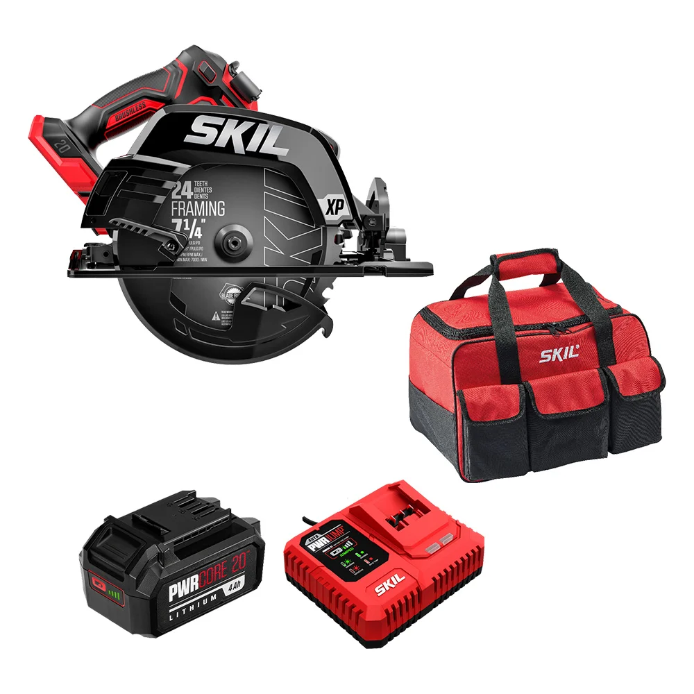 Комплектация Циркулярная пила SKIL CR5440; Диск с твердосплавными зубьями (24 зуба, 184 мм); Шестигранный ключ (хранится на корпусе); Адаптер для пылесоса; Сумка для хранения; Аккумуляторная батарея SKIL BY5196 20V 4.0Ah; Зарядное устройство SKIL QC5360 150W; Инструкция по применению