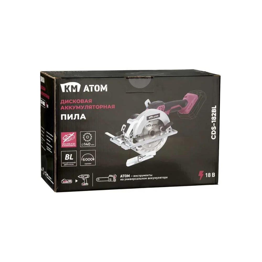 Купить Пила дисковая аккумуляторная КМ АТОМ, 18В, d140мм, без АКБ и ЗУ СDS-182BL по лучшей цене с доставкой - интернет магазин №1 в России