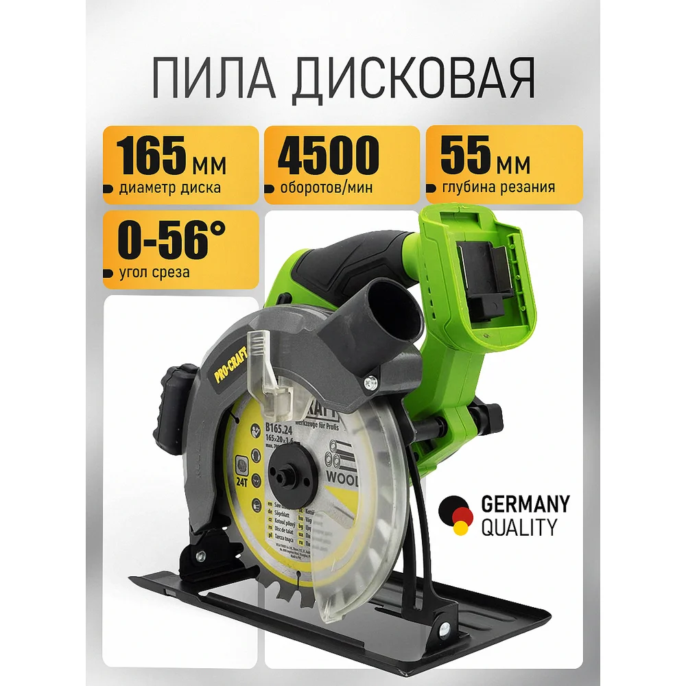 Купить Пила дисковая аккумуляторная PROCRAFT АКБ 20В 4 Ач+ЗУ, пропил 55мм PCA28 по лучшей цене с доставкой - интернет магазин №1 в России