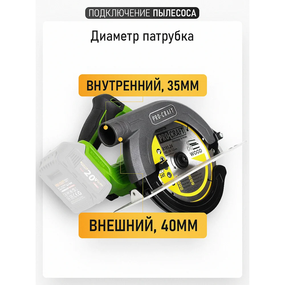 Пила дисковая аккумуляторная PROCRAFT PCA36 20В, 185 мм, пропил 67мм (Без АКБ и ЗУ) PCA36-bb