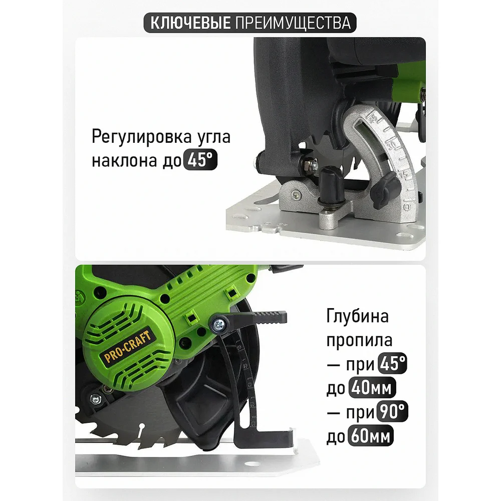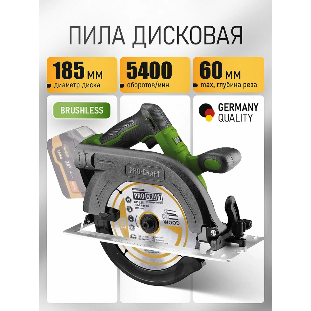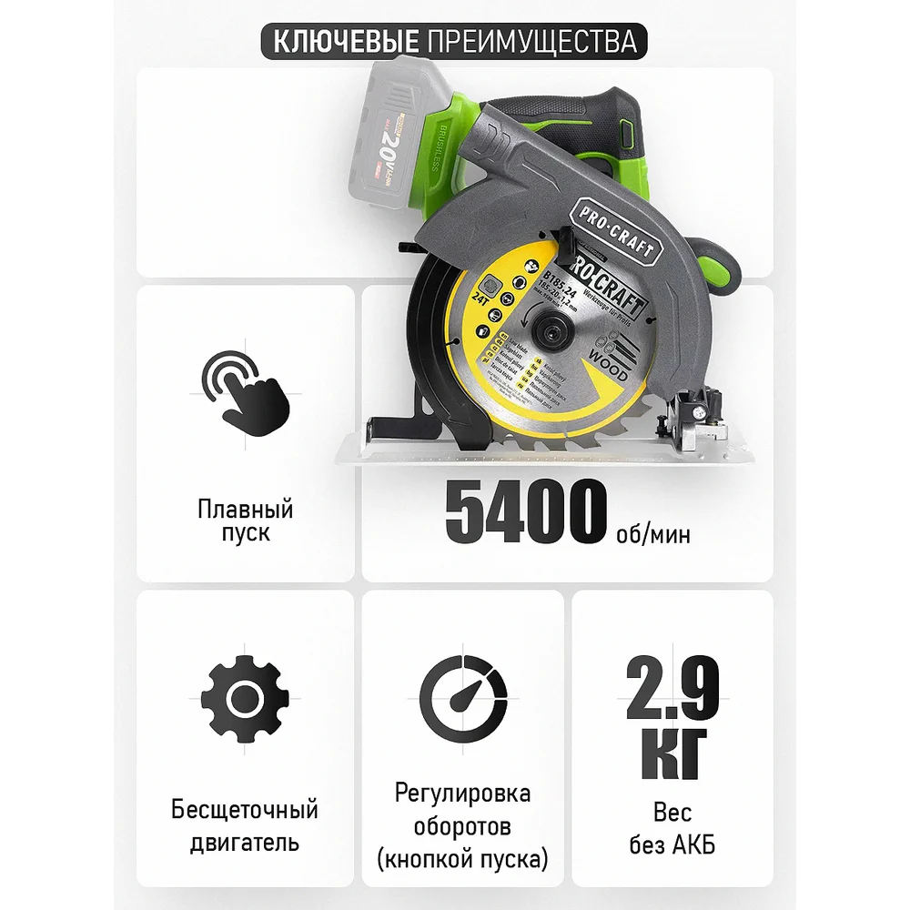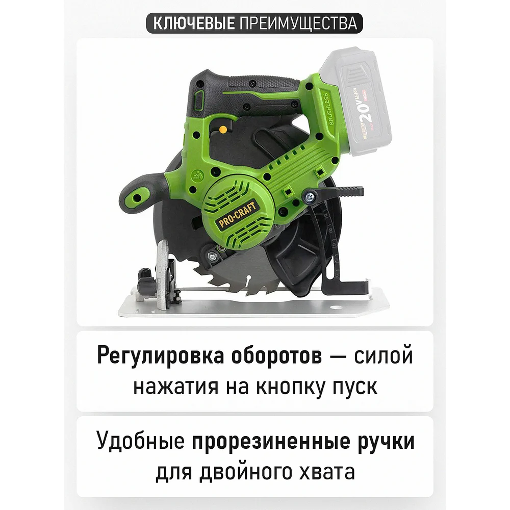 Купить Пила дисковая аккумуляторная PROCRAFT PCA36 20В, 185 мм, пропил 67мм (Без АКБ и ЗУ) PCA36-bb по лучшей цене с доставкой - интернет магазин №1 в России
