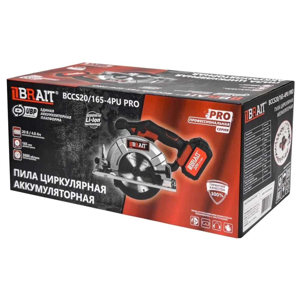 Купить Циркулярная аккумуляторная пила BRAIT BCCS20/165-4PU PRO 21.01.219.101 по лучшей цене с доставкой - интернет магазин №1 в России