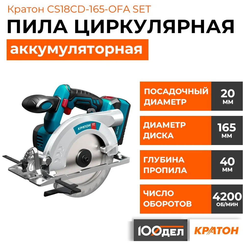 Купить Циркулярная аккумуляторная пила Кратон CS18CD165OFA SET (АКБ 4.0Ач ЗУ) 3 11 01 090 по лучшей цене с доставкой - интернет магазин №1 в России