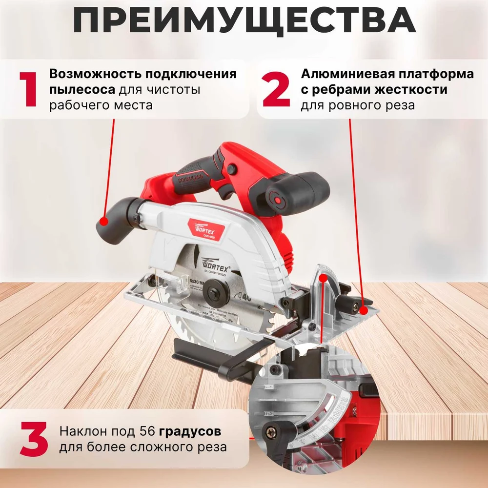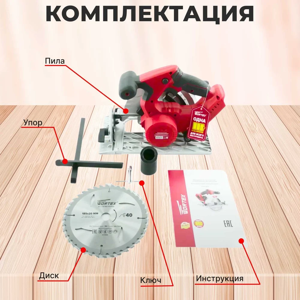 Купить Циркулярная аккумуляторная пила WORTEX CCS 1819 ALL1 CCS181900029 по лучшей цене с доставкой - интернет магазин №1 в России
