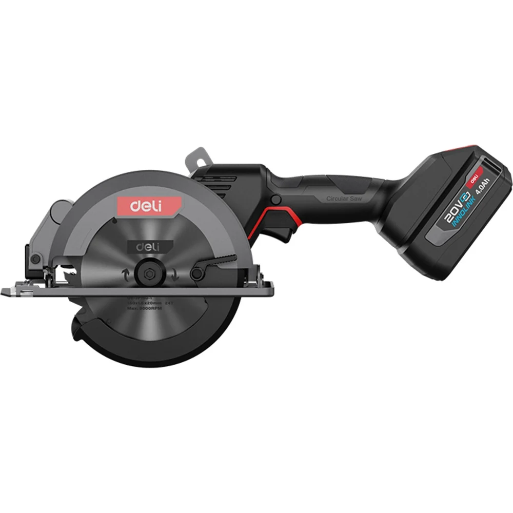 Циркулярная пила аккумуляторная Deli 150мм DE-YJ20-1D4 (2 АКБ + ЗУ, 20В х 4Ач, диск в комплекте, сумка) 164377