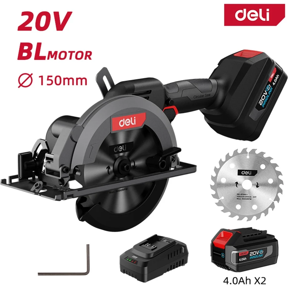 Купить Циркулярная пила аккумуляторная Deli 150мм DE-YJ20-1D4 (2 АКБ + ЗУ, 20В х 4Ач, диск в комплекте, сумка) 164377 по лучшей цене с доставкой - интернет магазин №1 в России