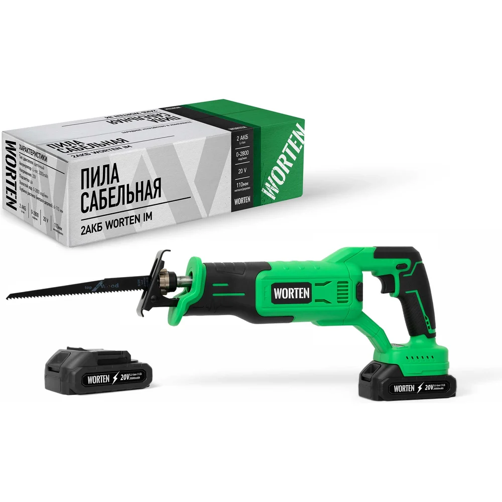 Купить Аккумуляторная пила сабельная, WORTEN 20В, 2х2.0 Ач КА-90000326 по лучшей цене с доставкой - интернет магазин №1 в России