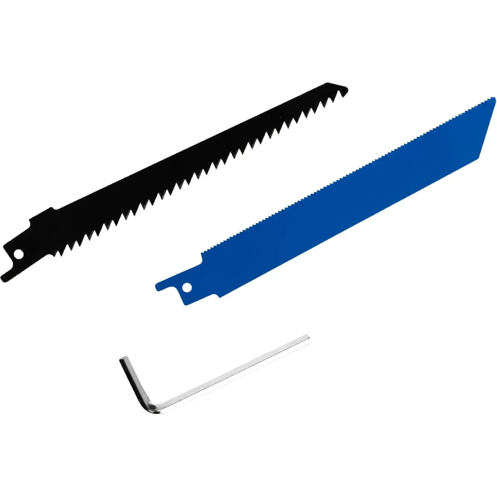 Комплектация пила сабельная – 1 шт; аккумулятор 4 Ач – 1 шт; зарядное устройство – 1 шт; пильное полотно по дереву – 1 шт; пильное полотно по металлу – 1 шт; ключ шестигранный – 1 шт; паспорт – 1 шт