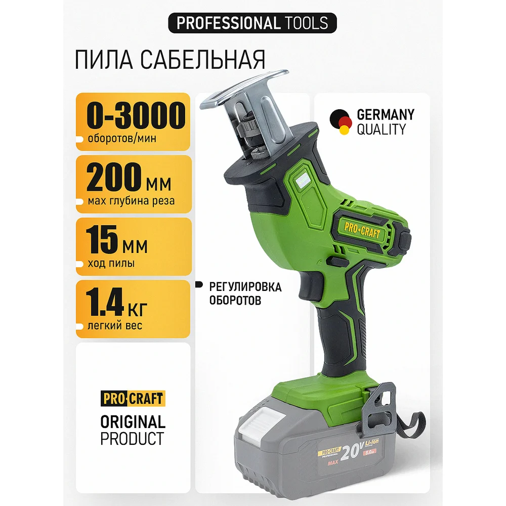 Пила сабельная аккумуляторная Procraft 20В 200мм (Без АКБ и ЗУ) PSS30