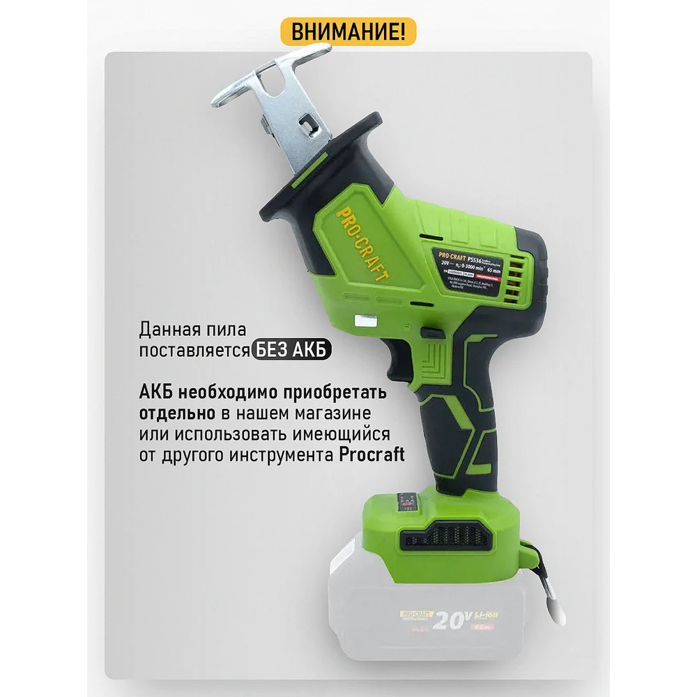 Купить Пила сабельная аккумуляторная PROCRAFT PSS36 20В 65мм (Без АКБ и ЗУ) PSS36-BB по лучшей цене с доставкой - интернет магазин №1 в России
