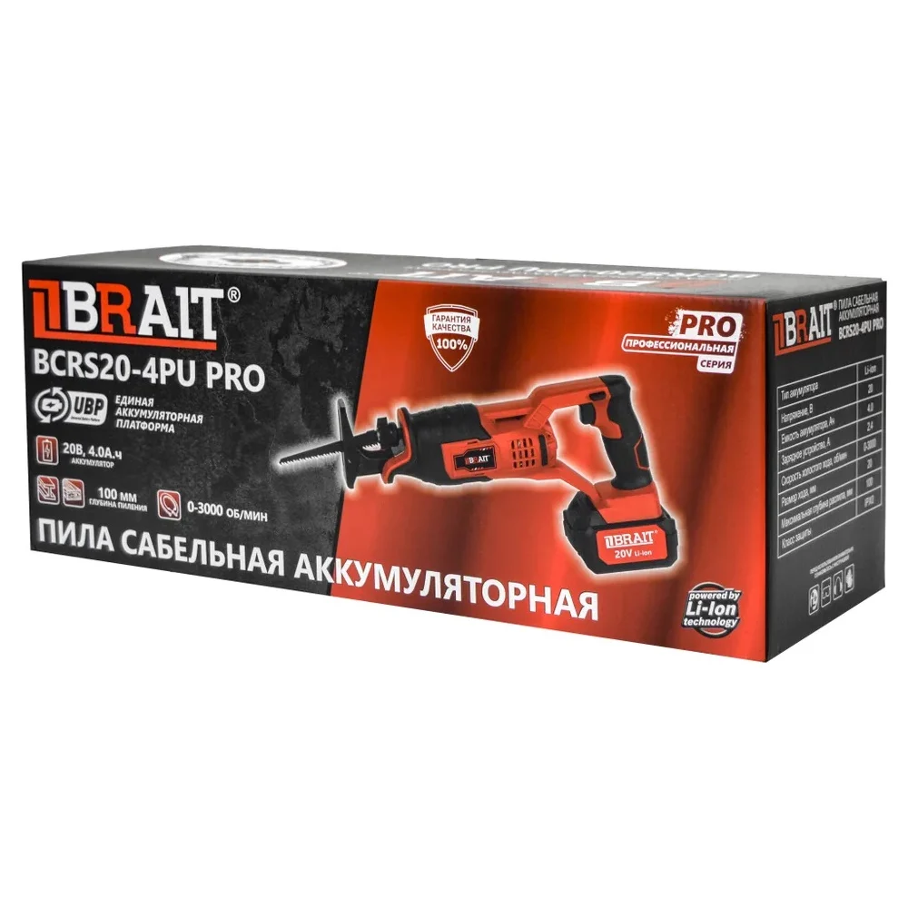 Купить Сабельная аккумуляторная пила BRAIT BCRS20-4PU PRO 21.01.220.101 по лучшей цене с доставкой - интернет магазин №1 в России