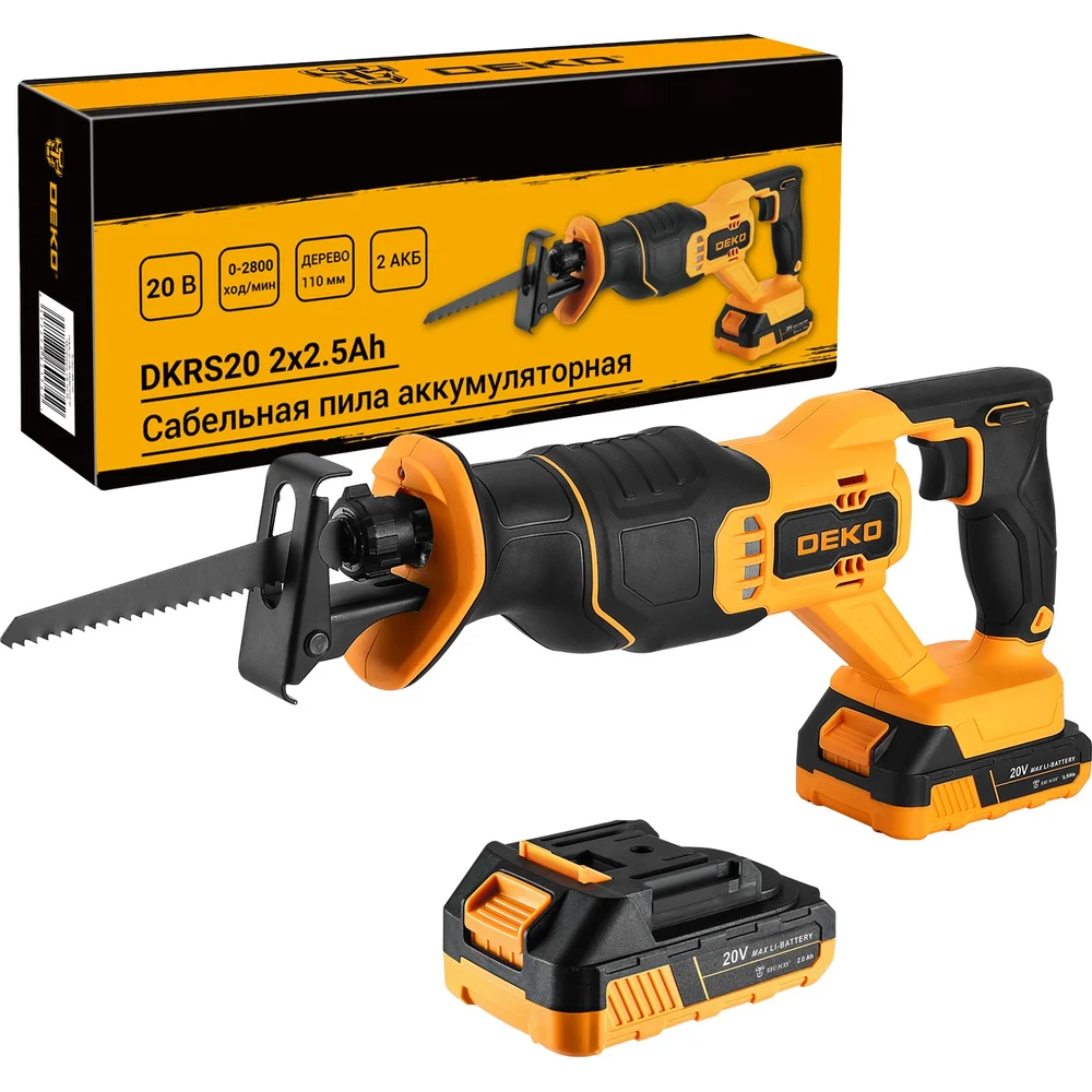 Купить Сабельная пила аккумуляторная DEKO DKHS20, 20В, 2x2.5Ач 085-1129 по лучшей цене с доставкой - интернет магазин №1 в России