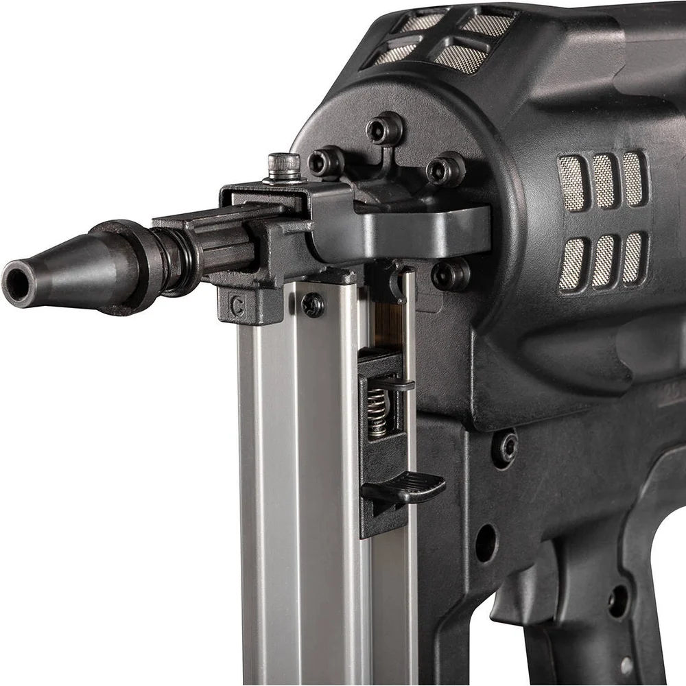Комплектация газовый монтажный пистолет GCN-40Y; 2 аккумуляторные батареи: Li-Ion 7,4 В / 2.2 Ач; зарядное устройство от сети 230 В с адаптером; сменная насадка на ствол (одна на инструменте); 4 форсунки для газового баллона (одна в инструменте); ремонтный комплект (уплотнительные кольца); ключ шестигранный 3 мм; ключ шестигранный 3,5 мм; ключ шестигранный 4 мм; очки защитные; масло для смазки; прочный пластиковый кейс; паспорт
