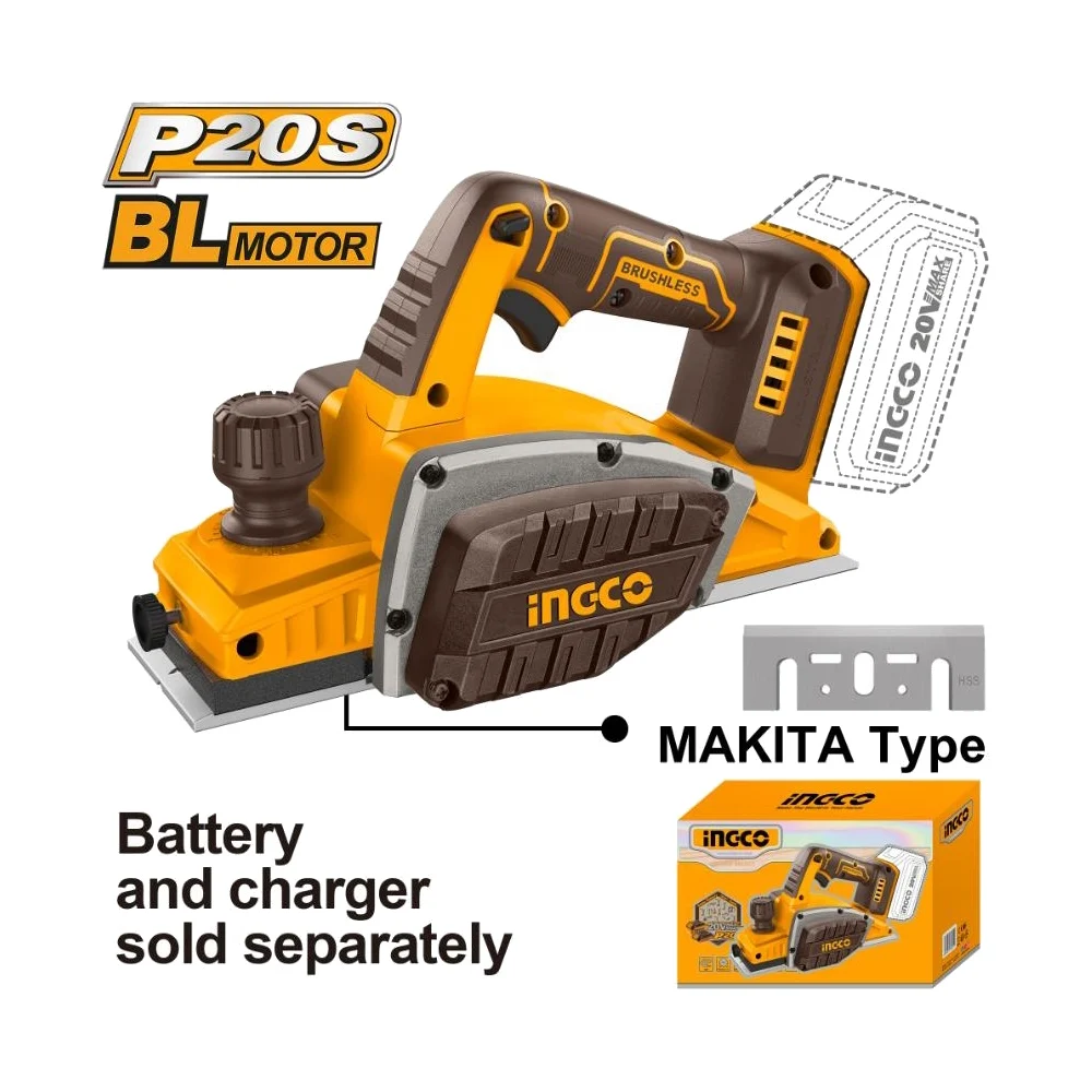 Аккумуляторный рубанок INDUSTRIAL INGCO 20В бесщеточный CRLI20401