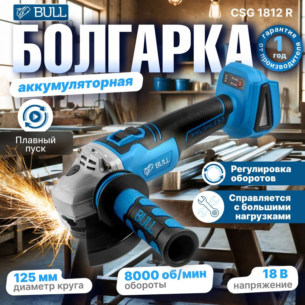 Купить Аккумуляторная углошлифмашина BULL CSG 1812 R в коробке 1333372 по лучшей цене с доставкой - интернет магазин №1 в России