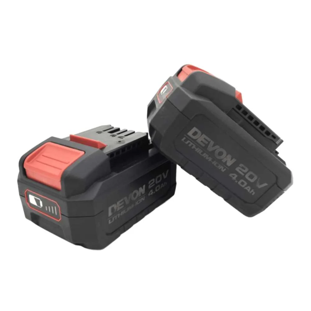 Комплектация УШМ DEVON 2908; Аккумулятор DEVON 20V 4.0 Ah (2 штуки); Сетевое зарядное устройство; Прочная сумка для переноски и хранения