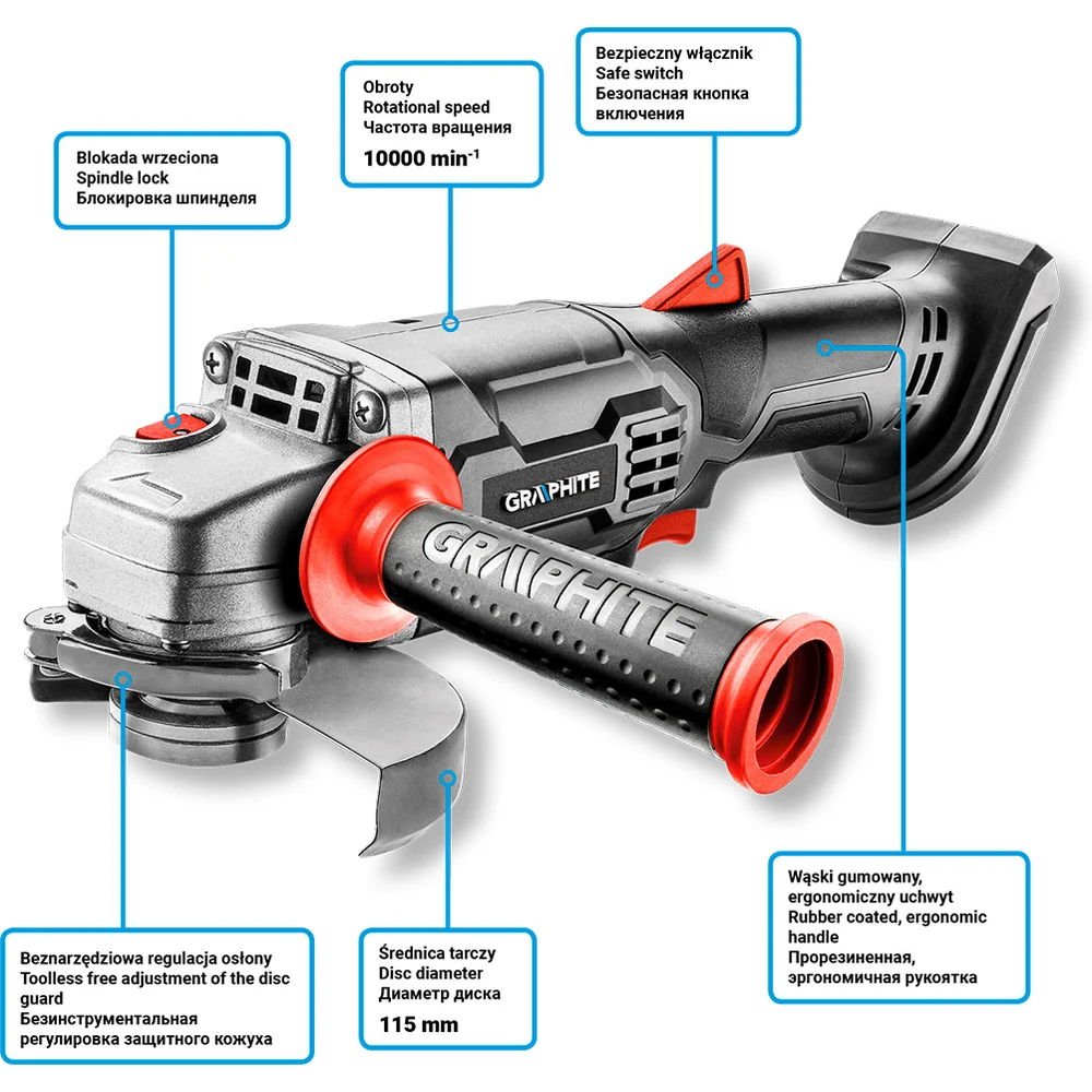 Купить Аккумуляторная угловая шлифмашина GRAPHITE Energy+ 58g003 по лучшей цене с доставкой - интернет магазин №1 в России