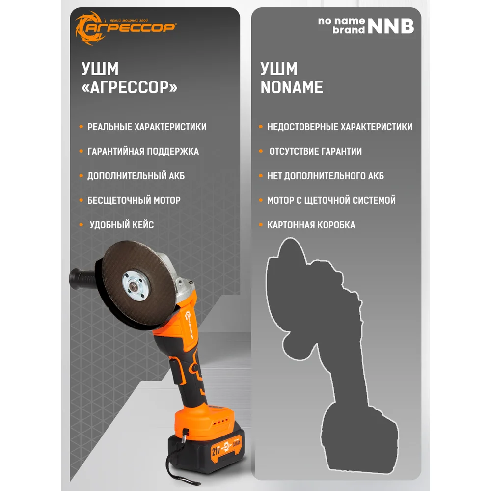 Купить Аккумуляторная УШМ Агрессор 750W, 21V/3А, бесщеточный мотор, АКБ 2 шт., М14, под диск125мм., зарядное устройство 220В, пластиковый кейс BL-750W по лучшей цене с доставкой - интернет магазин №1 в России