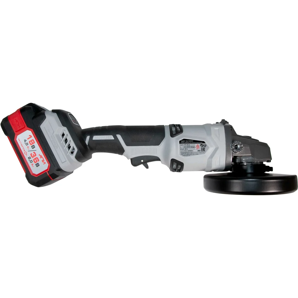 Бесщеточная аккумуляторная угловая шлифмашина Интерскол 125/36ВМЭ Li-ion АПИ (картон, без аккум. и ЗУ) 956.0.0.70