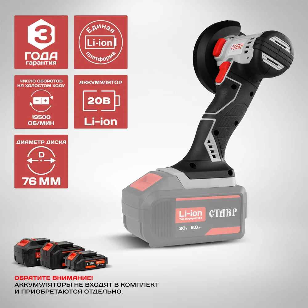 Купить Машина шлифовальная угловая аккумуляторная Ставр МШУА-76/20 9020700036 по лучшей цене с доставкой - интернет магазин №1 в России