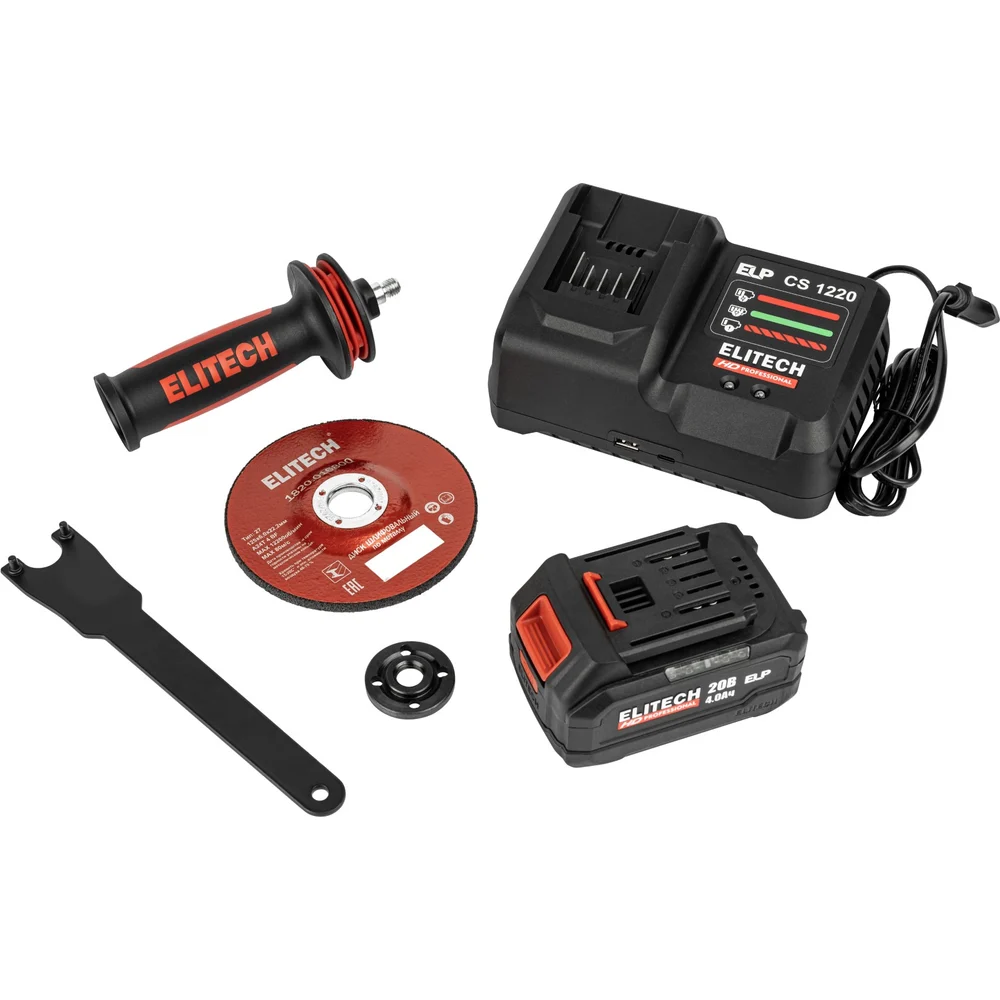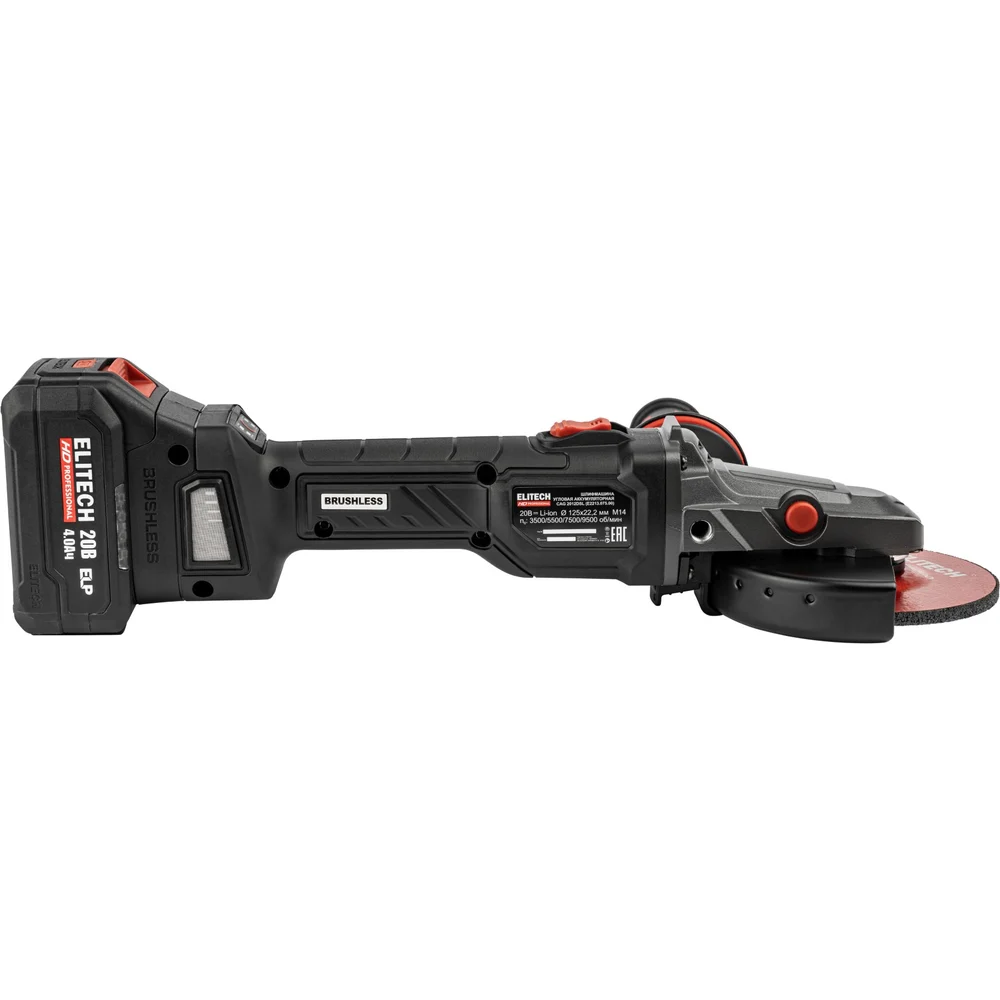 Купить Шлифмашина угловая аккумуляторная Elitech CAG 2012DSL (125мм,20В,1х4Ач,BL) HD 210318 по лучшей цене с доставкой - интернет магазин №1 в России