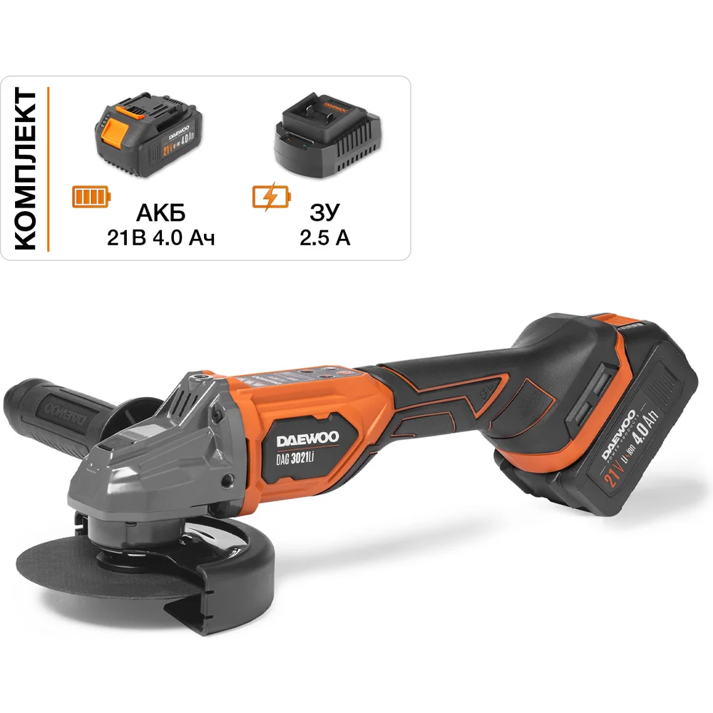 Купить Углошлифовальная аккумуляторная машина DAEWOO DAG 3021Li SET по лучшей цене с доставкой - интернет магазин №1 в России
