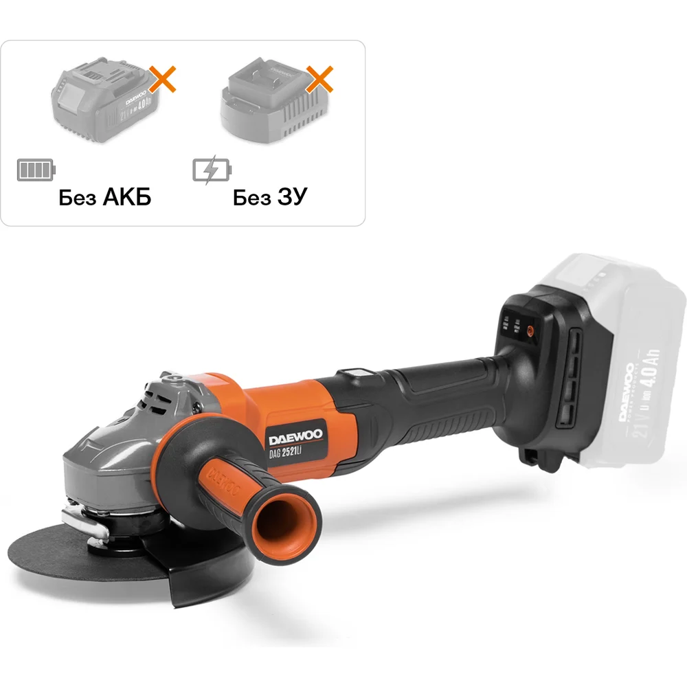 Купить Углошлифовальная машина аккумуляторная без АКБ и ЗУ DAEWOO DAG 2521Li по лучшей цене с доставкой - интернет магазин №1 в России