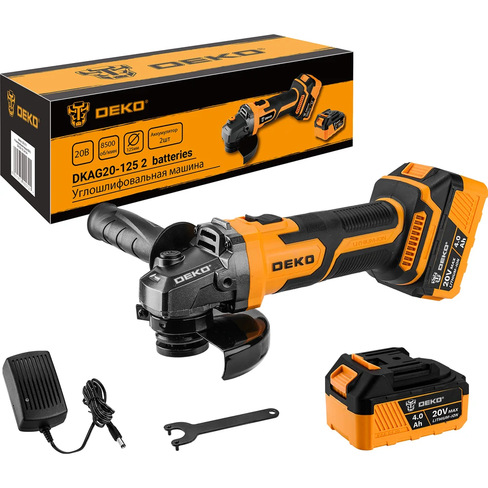 Купить Углошлифовальная машина DEKO DKAG20-125, 2х4.0 Ач 063-2151 по лучшей цене с доставкой - интернет магазин №1 в России
