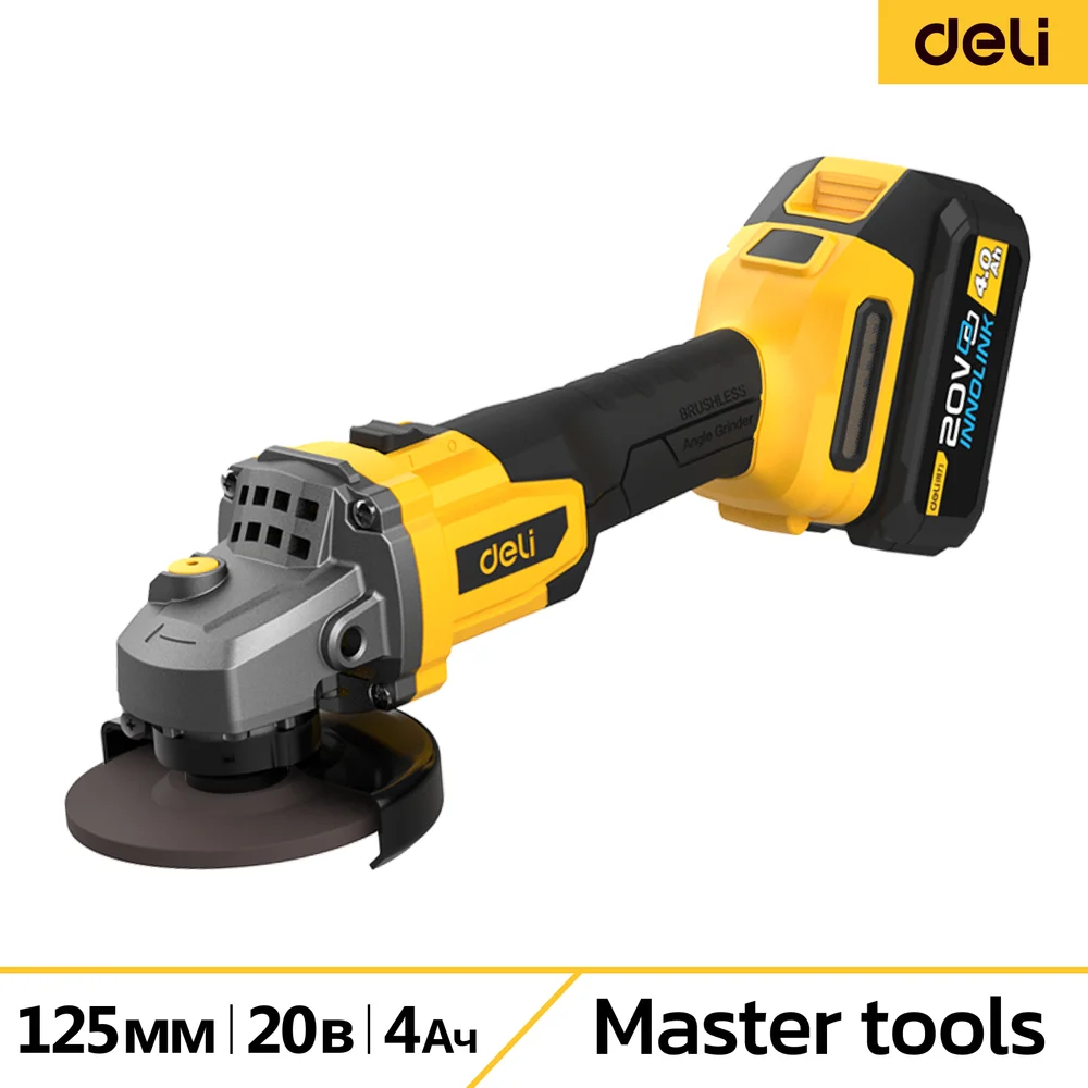 Купить Угловая шлифмашина аккумуляторная DELI 125мм DC602 (2 акб, 20В х 4Ач, ЗУ, 3 скорости, сумка) 162787 по лучшей цене с доставкой - интернет магазин №1 в России