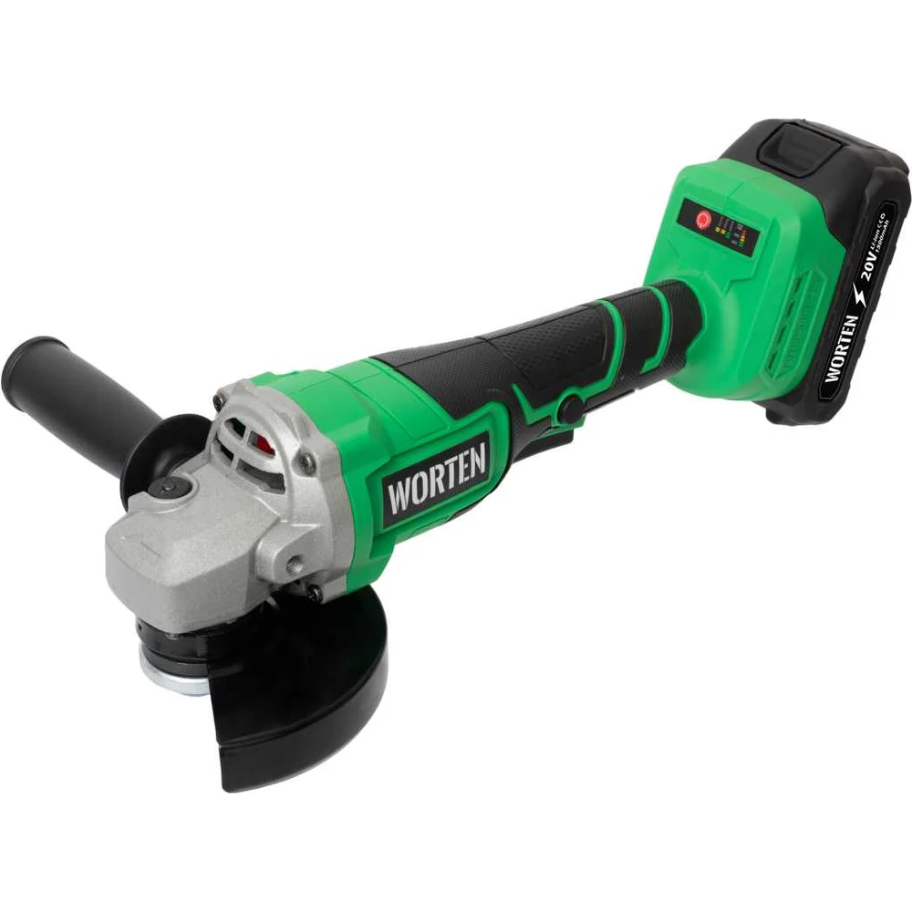 Купить Угловая шлифмашина аккумуляторная WORTEN D125, 20В, 2х1.5 Ач, М14 КА-90000329 по лучшей цене с доставкой - интернет магазин №1 в России