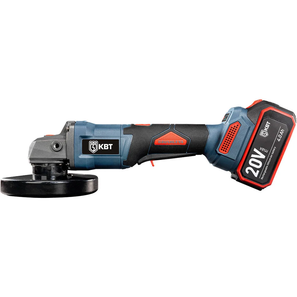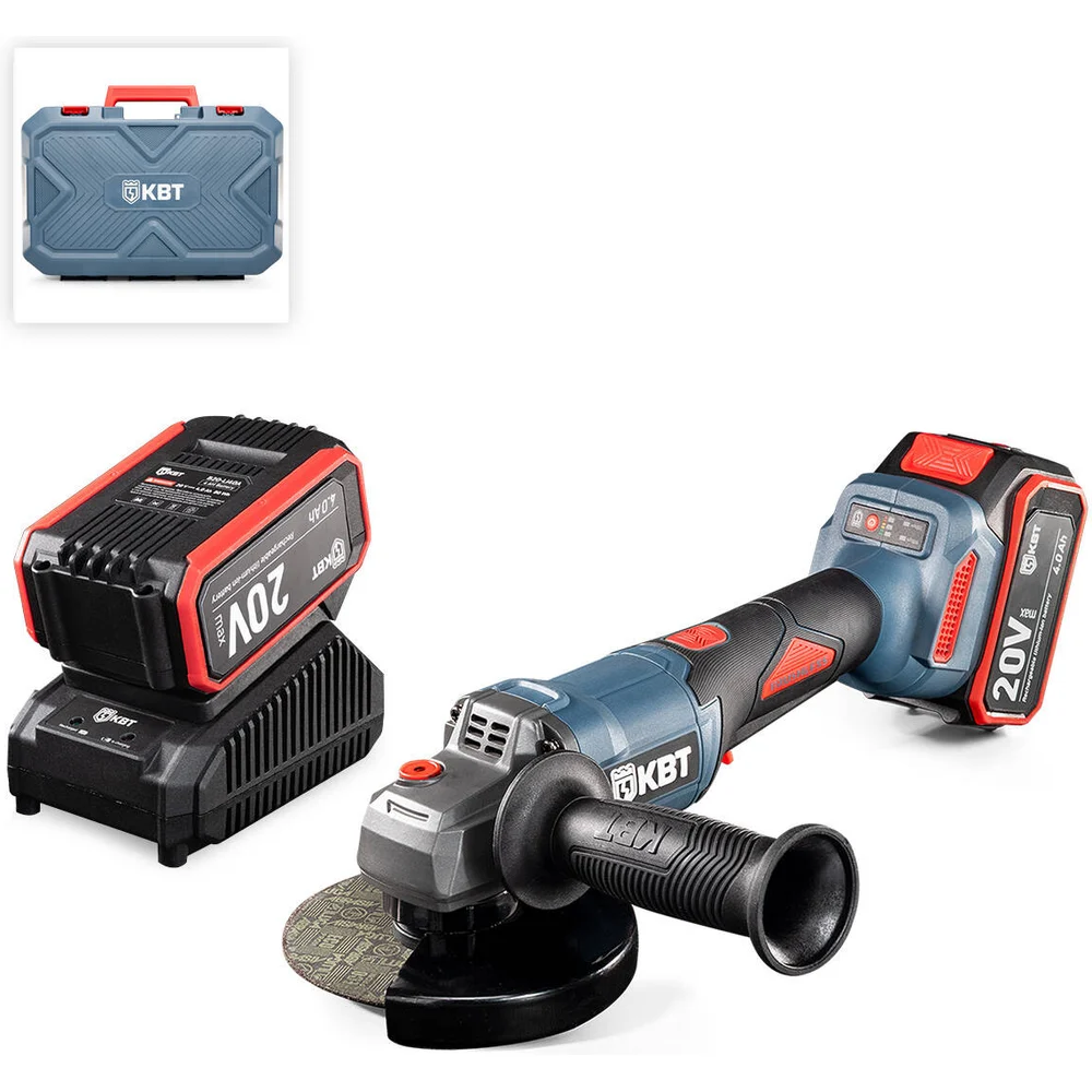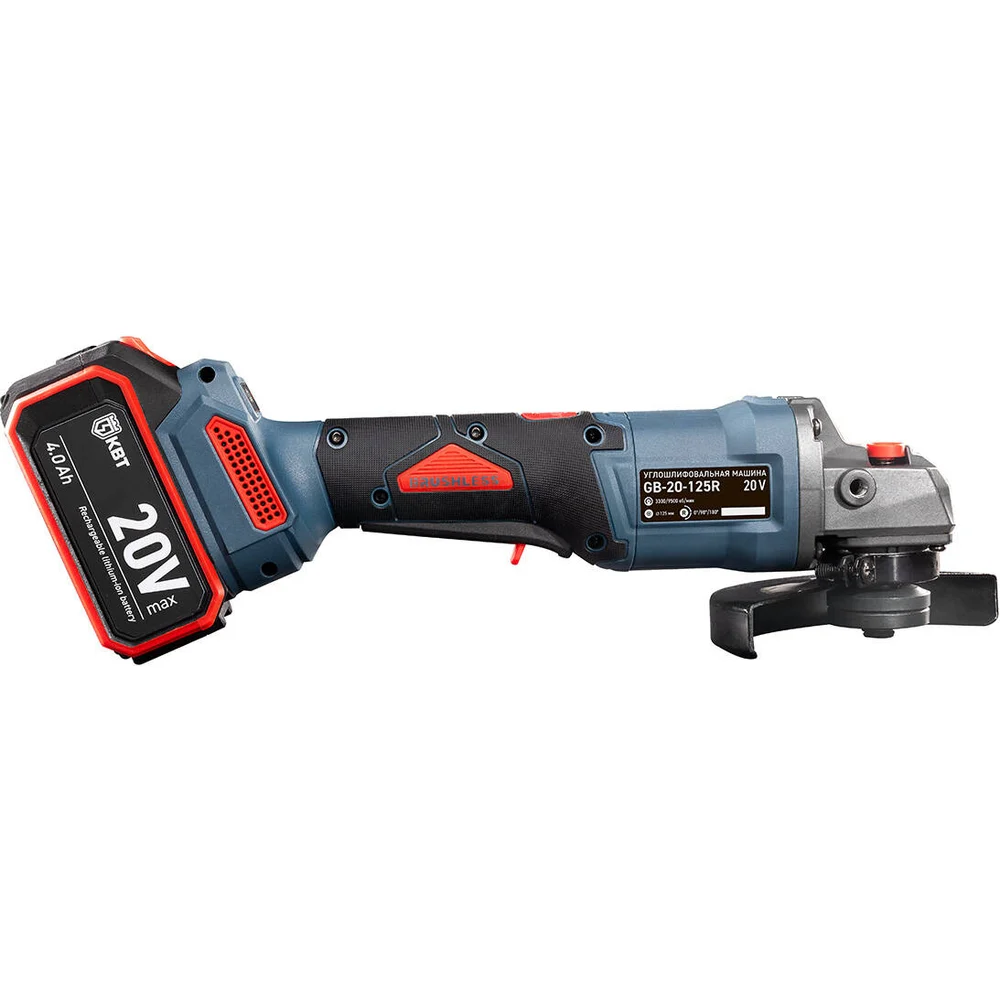 Комплектация Бесщеточная угловая шлифмашина GB-20–125R; 2 аккумуляторные батареи: Li-ion, 20 В/4Ач; Зарядное устройство от сети 230 В; Фирменная обрезиненная рукоятка; Ключ специальный; Прочный пластиковый кейс; Паспорт; Картонная коробка