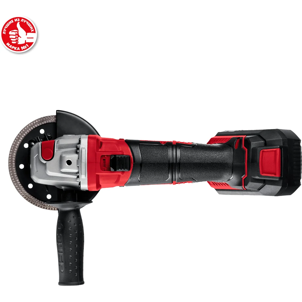 Комплектация Угловая шлифовальная машинка; Защитный кожух; Дополнительная рукоятка; Ключ специальный; Аккумулятор; Зарядное устройство; Руководство по эксплуатации; Кейс