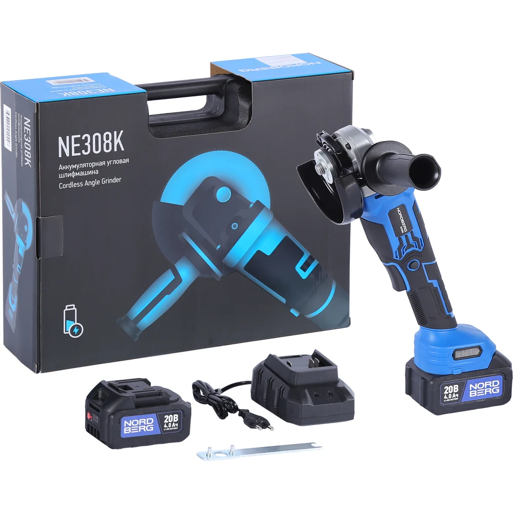 Купить УШМ аккумуляторная NORDBERG диаметр диска 125 мм, 20В, 2 аккумулятора и зарядное устройство NE308K по лучшей цене с доставкой - интернет магазин №1 в России