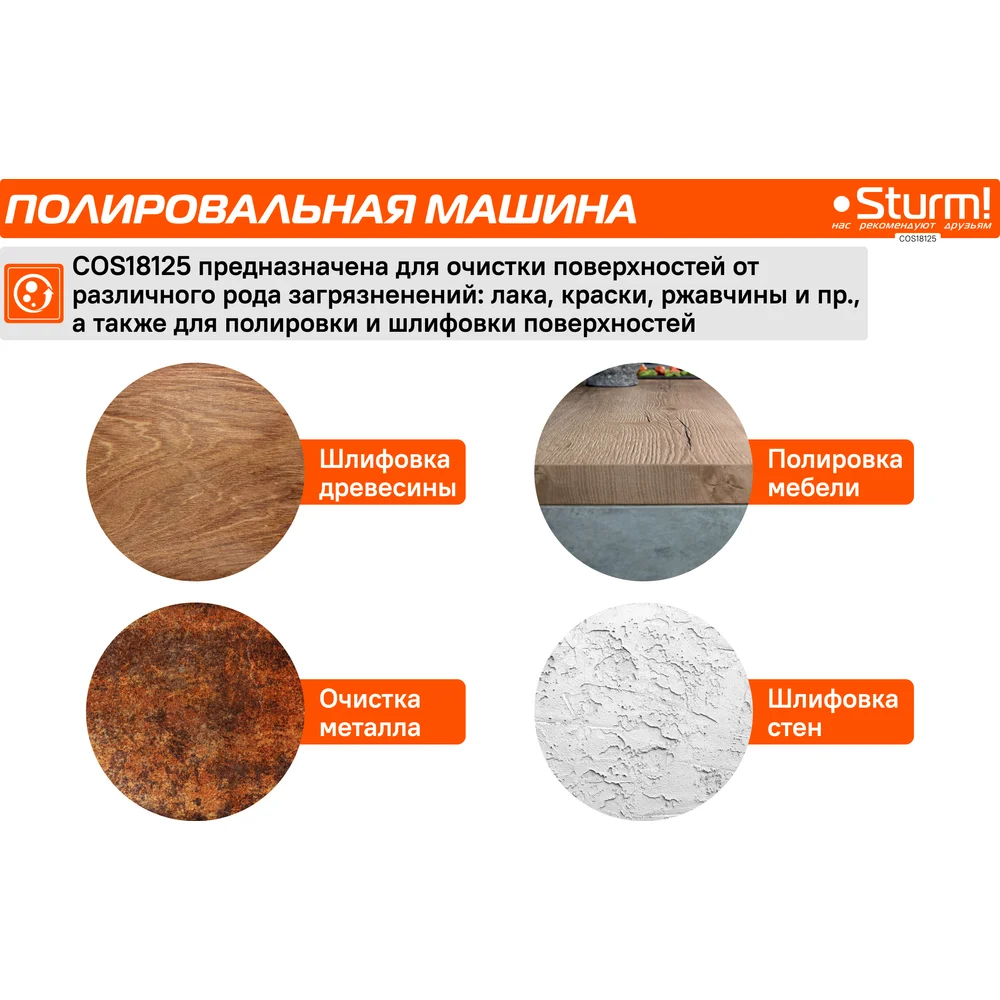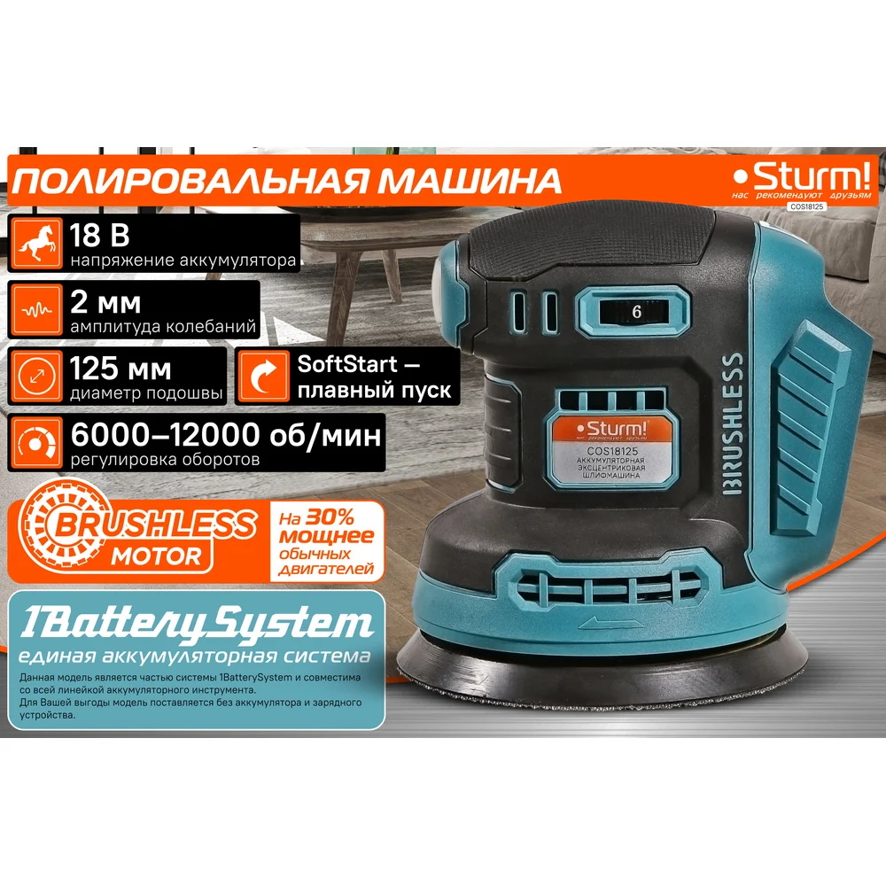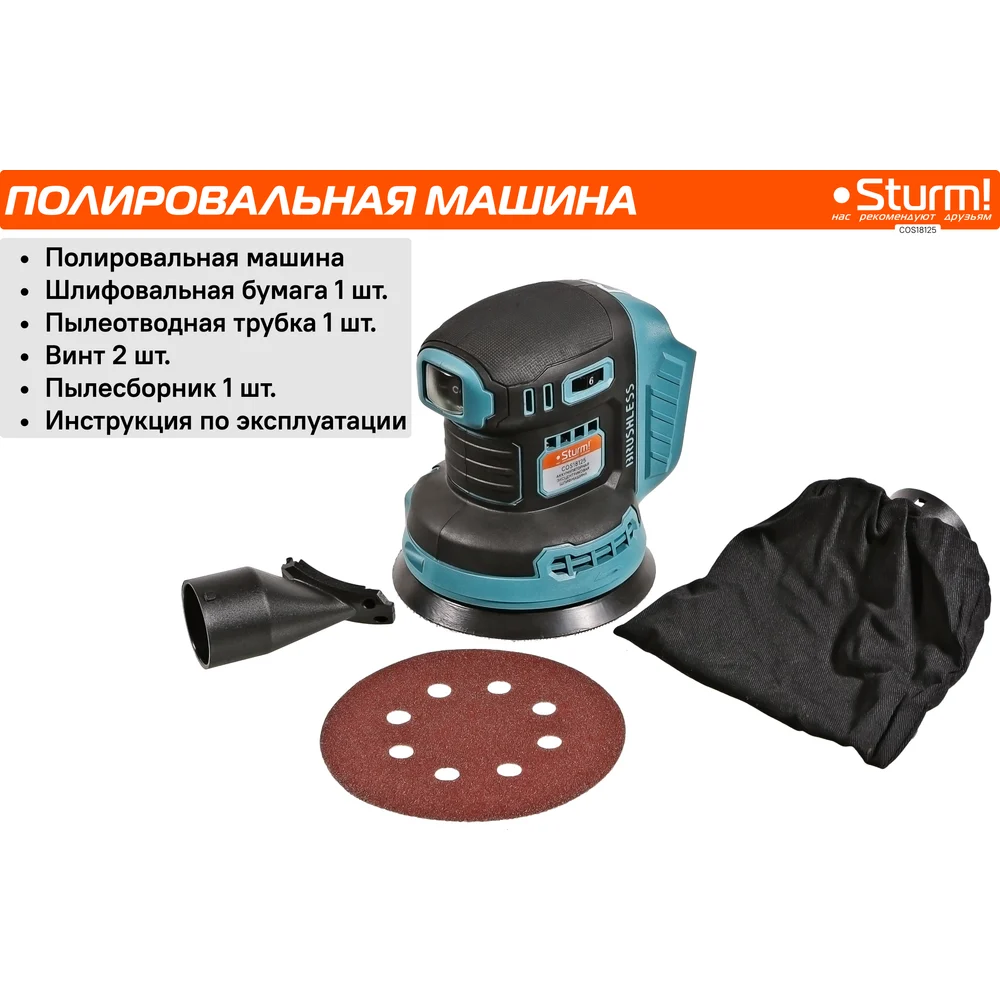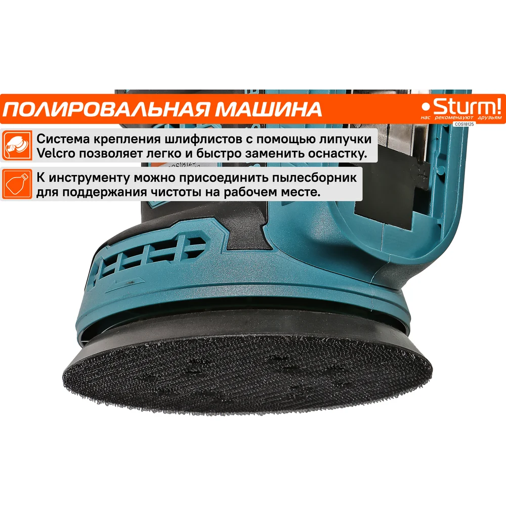 Купить Аккумуляторная эксцентриковая шлифмашина Sturm бесщеточный двигатель, 1BatterySystem COS18125 по лучшей цене с доставкой - интернет магазин №1 в России