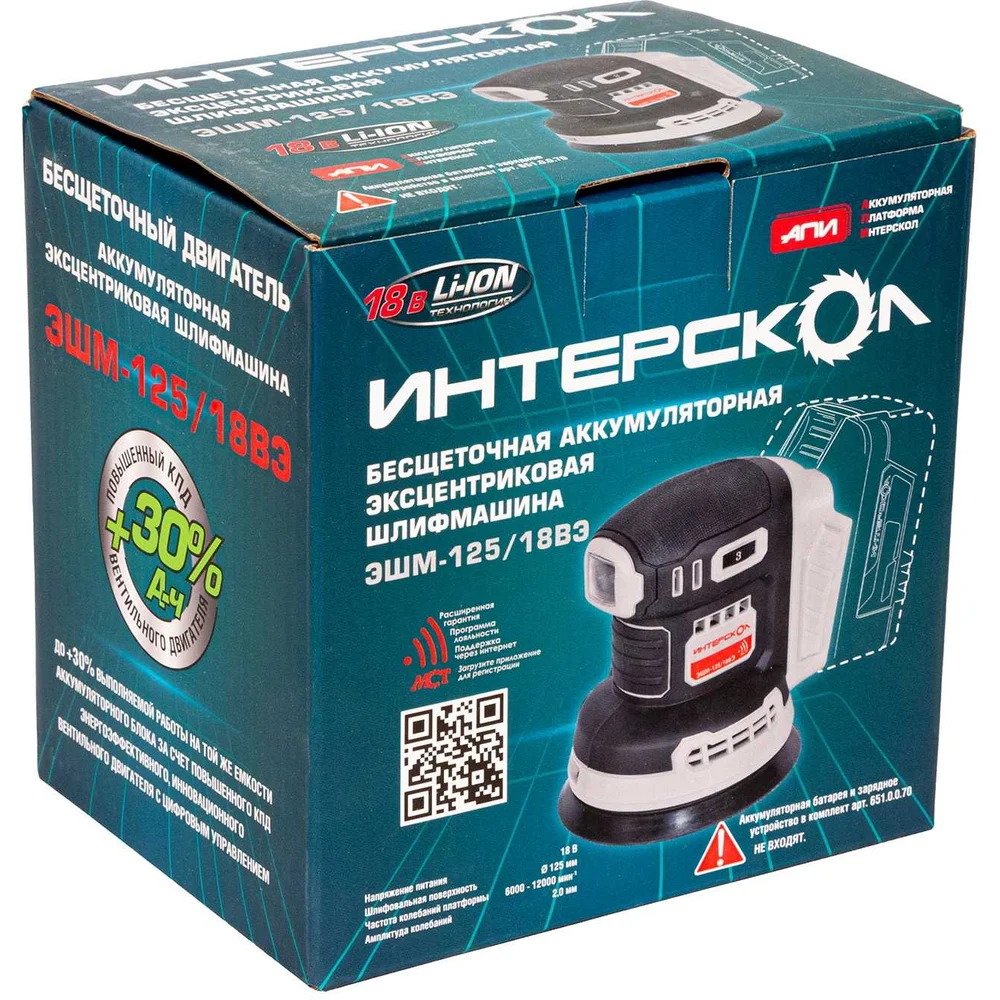 Купить Бесщеточная аккумуляторная эксцентриковая шлифмашина Интерскол ЭШМ-125/18ВЭ Li-ion АПИ (картон, без аккум. и ЗУ) 651.0.0.70 по лучшей цене с доставкой - интернет магазин №1 в России