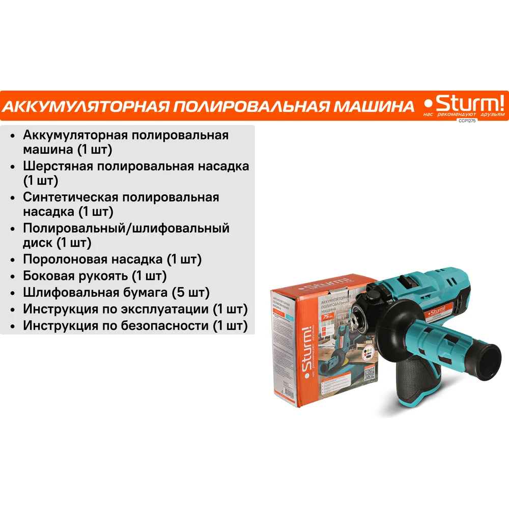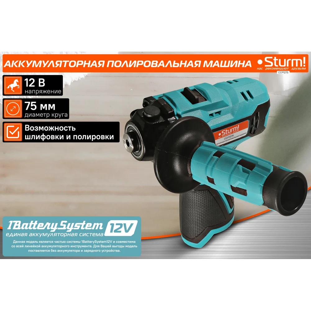 Купить Аккумуляторная полировальная машина Sturm 1BatterySystem12V CCP1275 по лучшей цене с доставкой - интернет магазин №1 в России