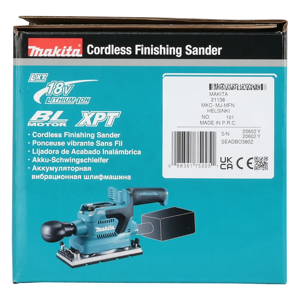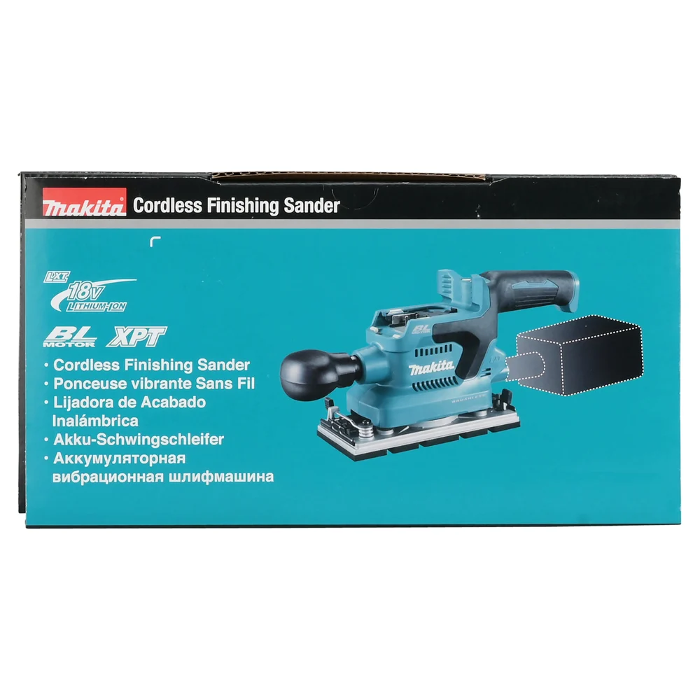 Вибрационная шлифмашина Makita LXT, BL, 18 В, XPT, 93x228 мм, 4000-12000 об/мин, ампл. 2.0 мм, 1.5 кг, кор., пылесборник, зажим, без аккум. и ЗУ DBO380Z