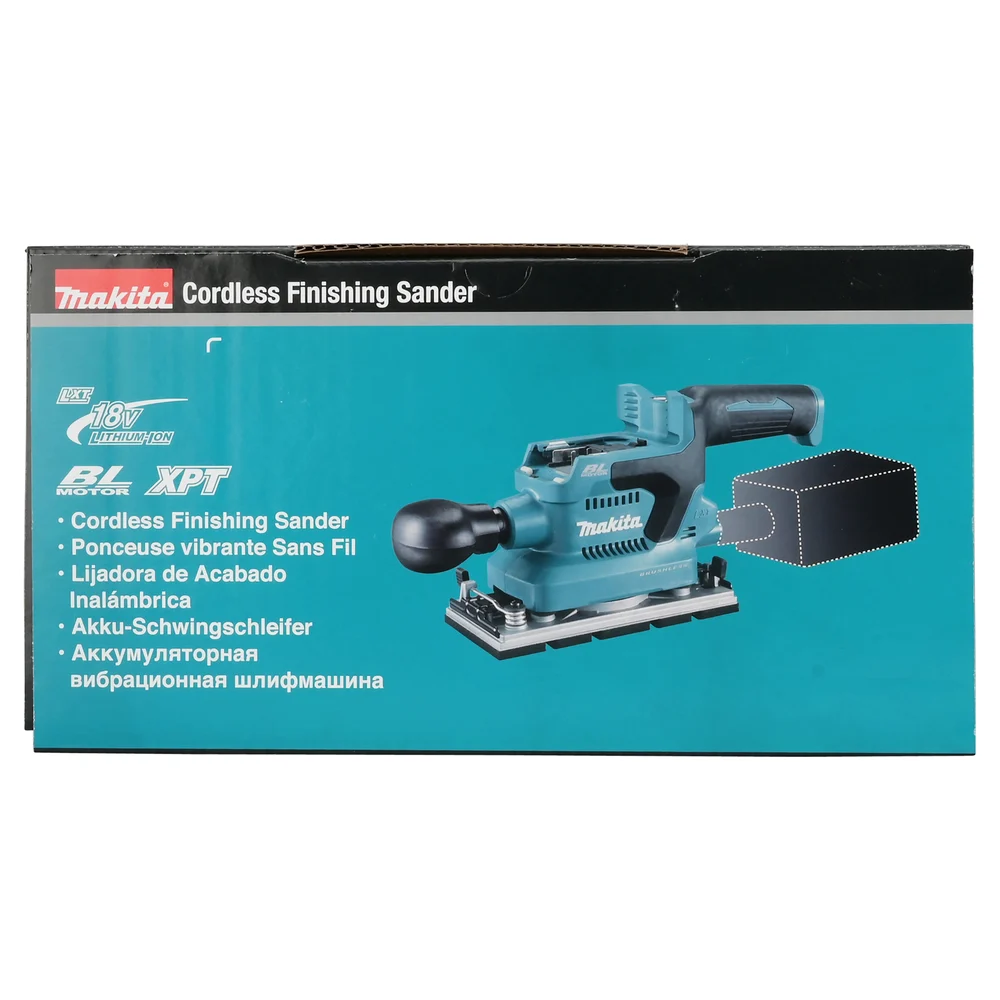Купить Вибрационная шлифмашина Makita LXT, BL, 18 В, XPT, 93x228 мм, 4000-12000 об/мин, ампл. 2.0 мм, 1.5 кг, кор., пылесборник, зажим, без аккум. и ЗУ DBO380Z по лучшей цене с доставкой - интернет магазин №1 в России