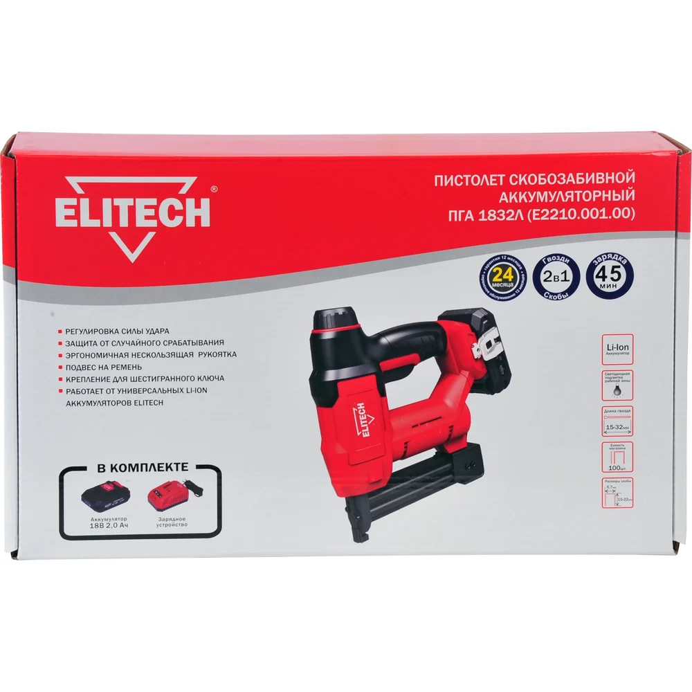 Купить Аккумуляторный скобозабиватель ELITECH ПГА 1832Л E2210.001.01 198056 по лучшей цене с доставкой - интернет магазин №1 в России