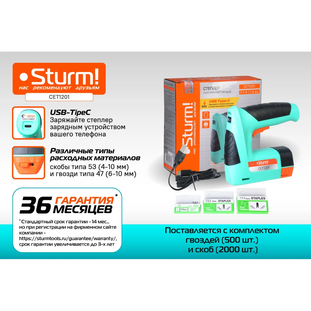 Купить Аккумуляторный степлер Sturm Haus Master CET1201 по лучшей цене с доставкой - интернет магазин №1 в России